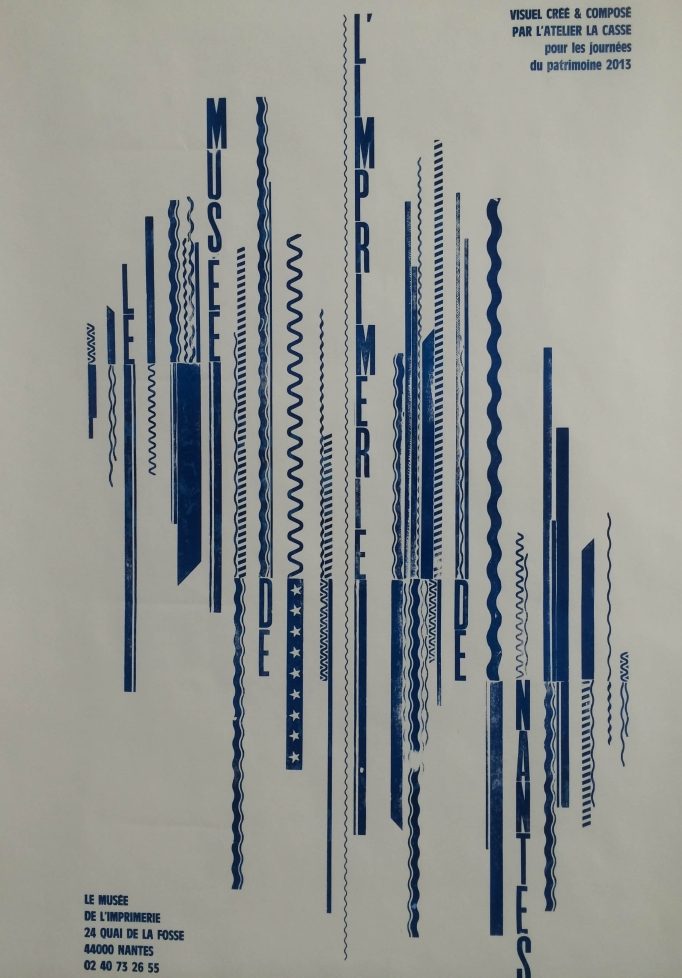 En deze prachtige poster van Atelier le Casse is speciaal gemaakt voor het drukkerijmuseum in Nantes. Het verhaal erachter valt op hun eigen website te lezen.