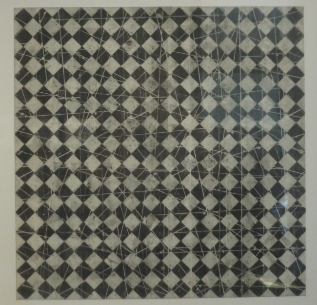 Als een reactie op die rationele werken hangen er in een bescheiden hoekje intuïtieve tekeningen van Sigrid van Woudenberg – werken waarbij juist geen sprake is van eenheid in stijl.