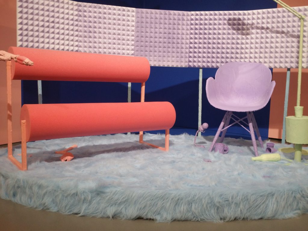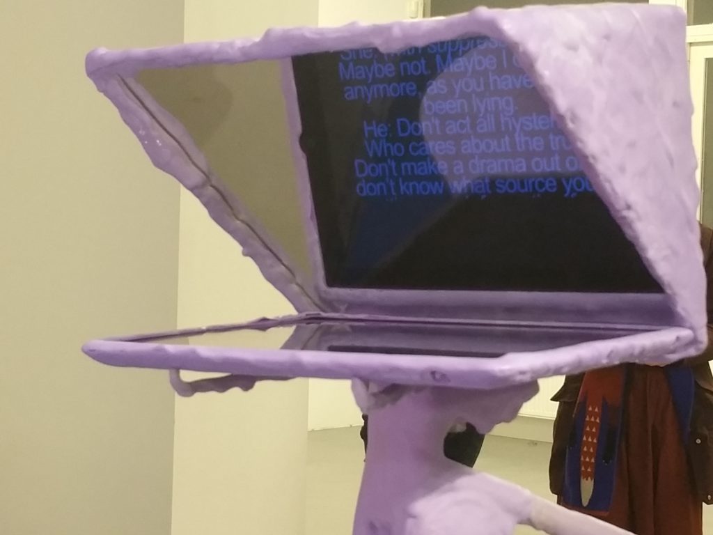 In The Conversation – installatie, video en performance – onderzoekt Marijn Ottenhof de ‘waarheid’ van reality tv door een ruzie tussen twee geliefdes in een decor te plaatsen van een talkshow met kunstmatig meubilair. De ruzie oogt echt, maar de autocue en ondertitels die niet ‘lip sync’ zijn, halen de waarachtigheid direct onderuit. Vragen die opkomen zijn: Wat is echt en wat is nep? En hoe intiem is een ruzie nog wanneer deze door camera’s minutieus gevolgd en door autocue woord voor woord uitgeschreven is?
