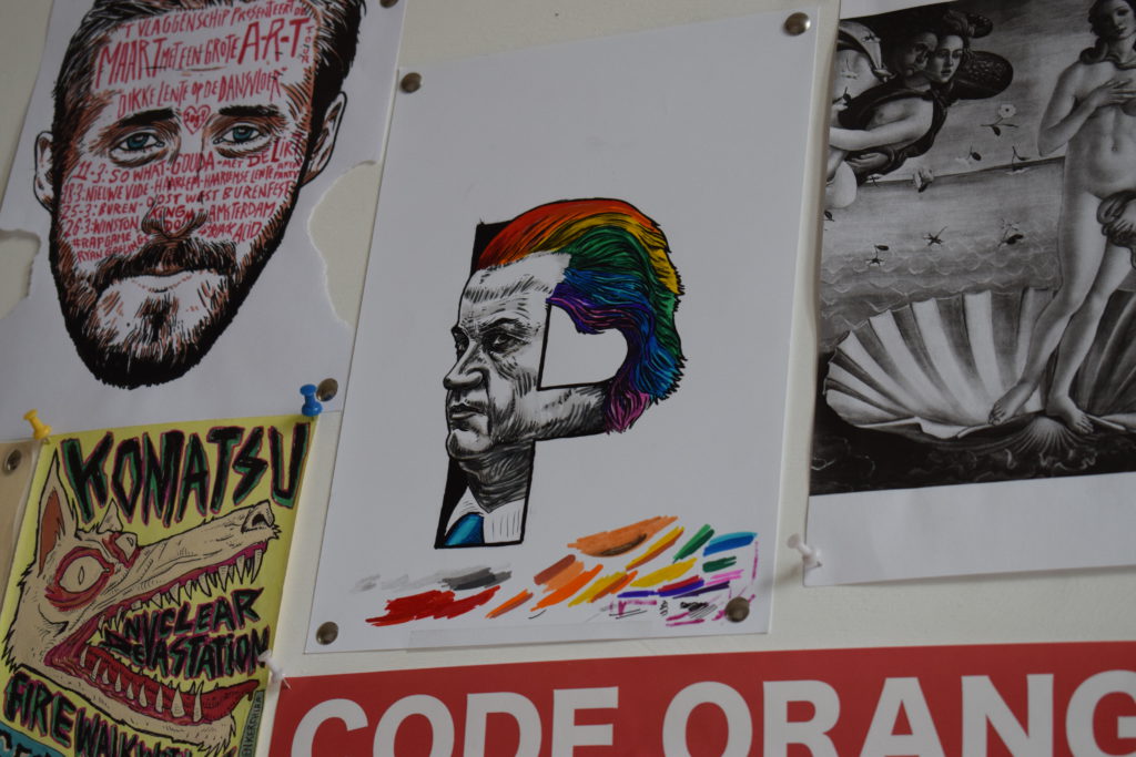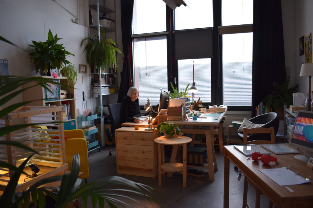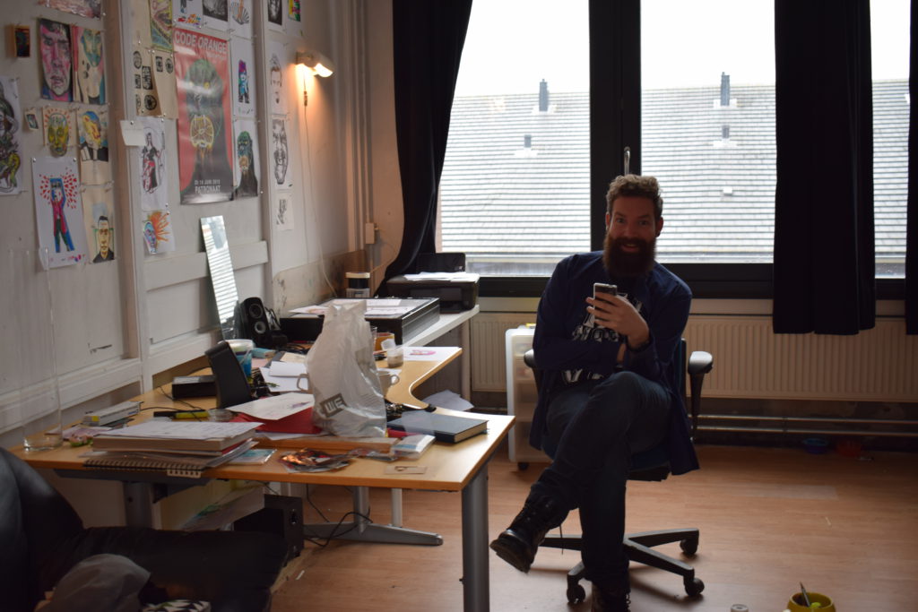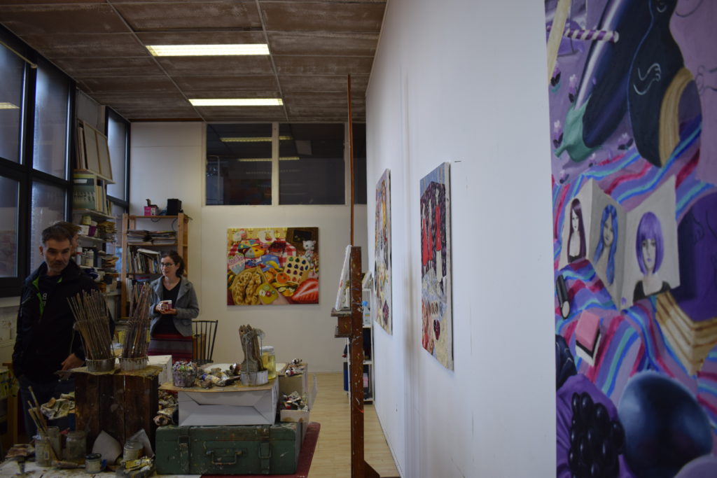 De meeste mensen kennen Nieuwe Vide alleen als expositie ruimte. Maar er zijn ook zo’n 25 studio’s. Waar het kan, betrekt hun studio kunstenaars graag bij het programma.