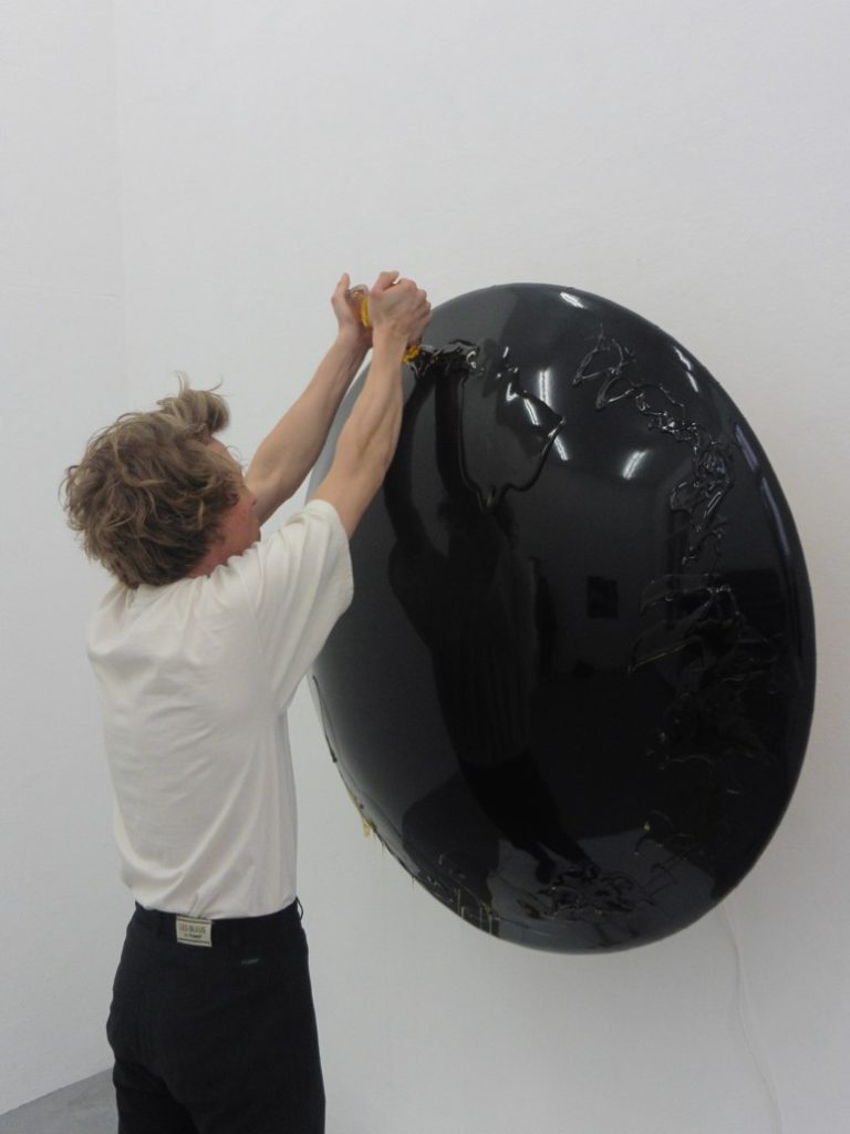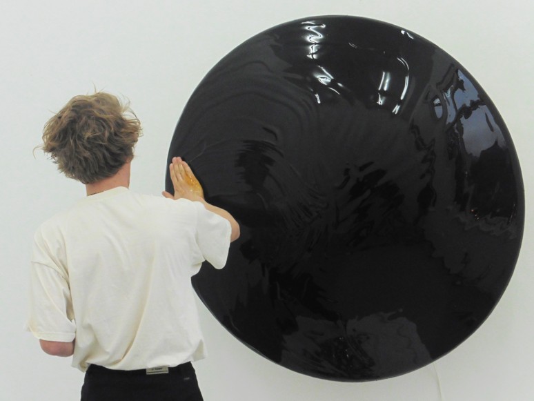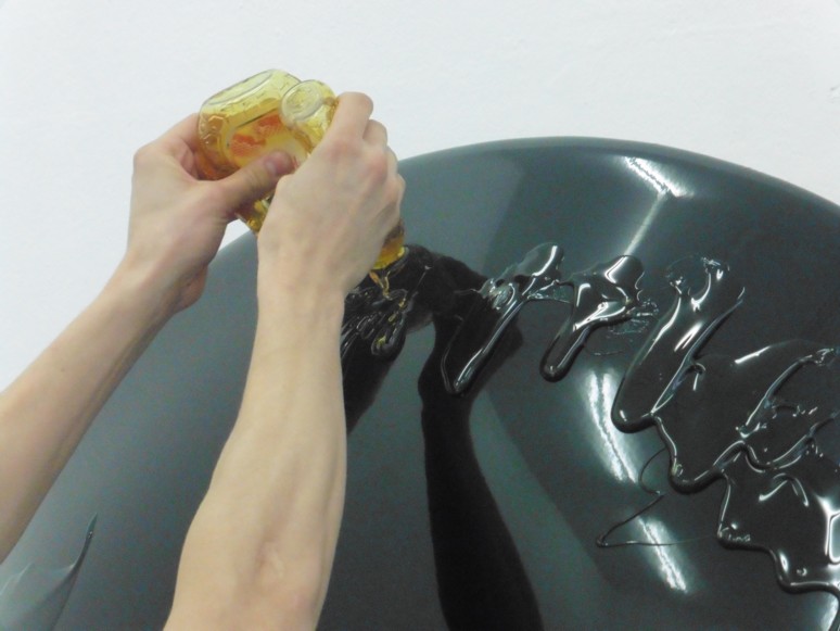 Johnny Wiekhart gebruikte een schilderij voor een levend doek. Hij liet het draaien aan de muur en goot er honing overheen