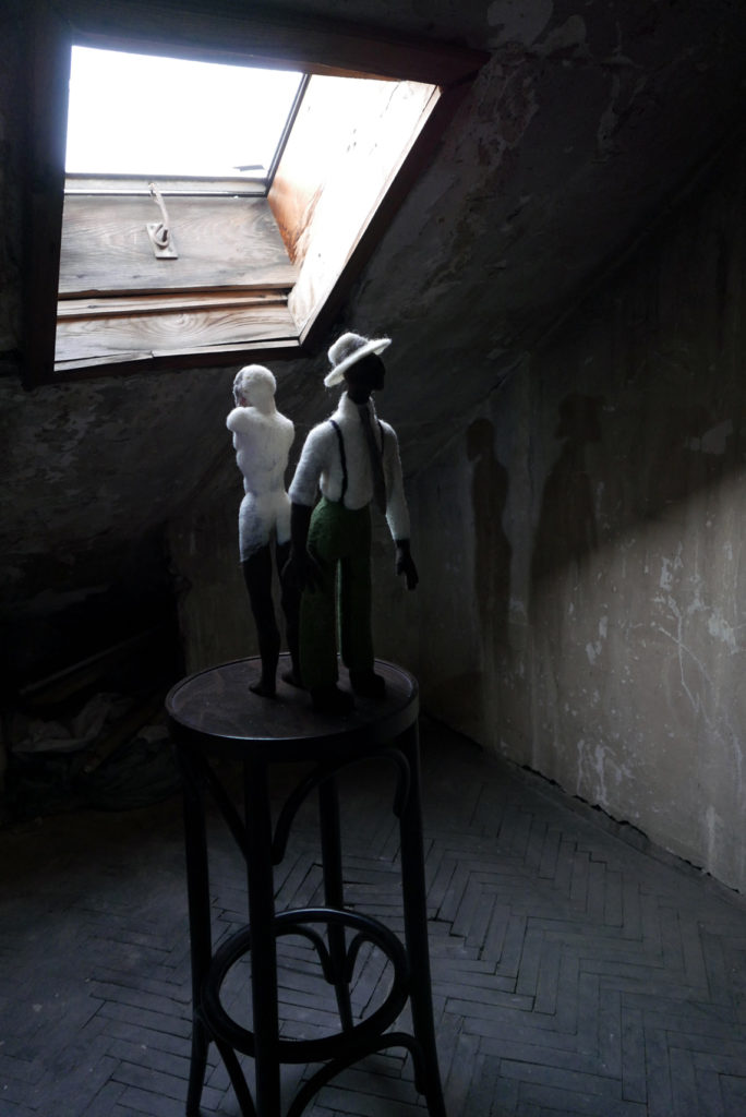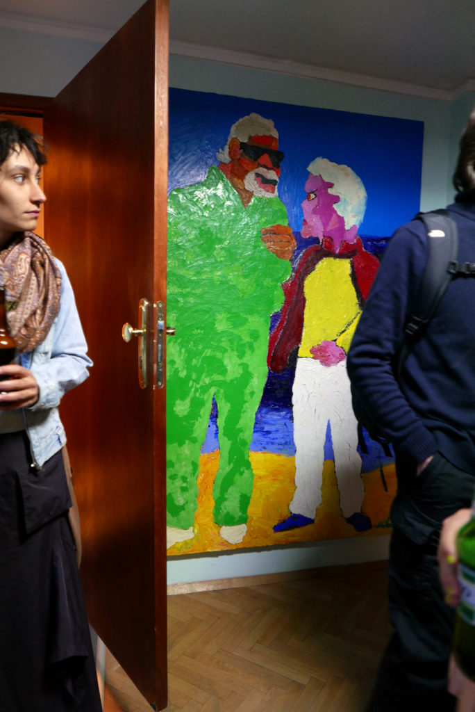 At Swimming Pool there was an opening of the groupshow My Dear Provincialist with works of six Bulgarian artists; Valko Chobanov, Krasimira Kirova, Dimitar Shopov, Trifon Tashev, Martina Vacheva and Ina Valentinova. Swimming Pool is worth a visit not only because of what is shown, but also because of its surrealistic setting in a bright top apartment in decay consisting of several terraces with an empty swimming pool outside and a stunning view over the city.