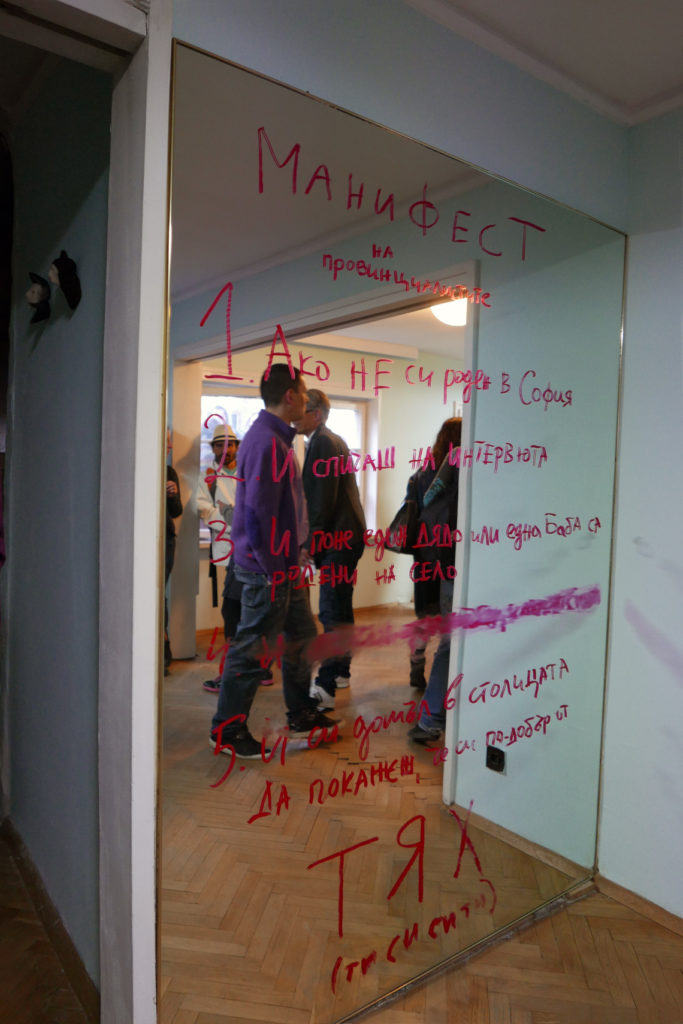 In this post I will briefly report on three independent art spaces I visited; Æther, Swimming Pool and ICA Sofia (Institute of Contemporary Art). The first two had an opening during my stay. Starting from scratch without many contacts in this city I found it hard to find these spaces. There aren’t many of them, which certainly has to do with the little governmental support they get (compared to a country like the Netherlands) but in a way it all feels very exciting and I have the feeling we can expect a lot more to come in the near future. The list of art galleries in Sofia actually is quite long, but the first online impression of most of them doesn’t feel very innovative nor contemporary. On the other hand, I’m sure there’s a lot more going on then I could have seen these two weeks as a visitor and I’m soon coming back to find out.