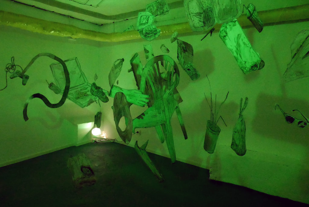 Æther had an opening of Ghosts in the rain from Nicholas McArthur and I had the chance to see a bit of the previous show Appetite from Martin Penev as well that was still installed downstairs a couple of days before.