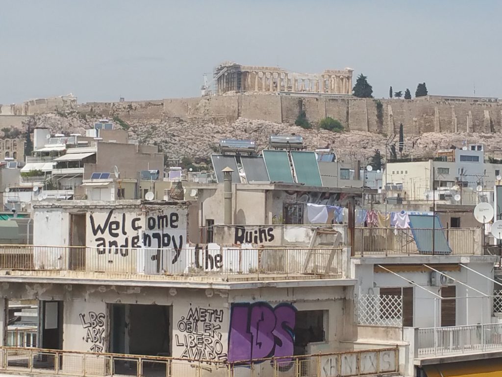 Het klinkt hopeloos, ten minste in mijn Nederlandse oren toen ik met Anke van den Berg (See Lab), Susanne Koekenberg (Nest), Rob Knijn (Naked en Alternativeartguide.com), Mattias König (Locatie Z), Ingrid Lee (iii initiative), Sanne Luteijn (Billytown), Ludmila Rodrigues (Quartair), Charlotte van Winden (Moose Space), Connie van Driel en Mischa Poppe (Stroom Den Haag) een bezoek bracht aan Athene.
