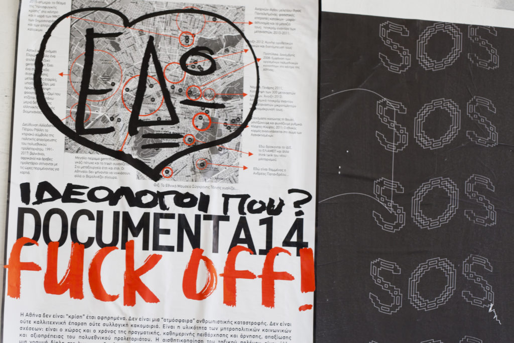 En dan die Documenta… een 38 miljoen kostend elitair kunstfeestje waaraan de Griekse regering wel geld spendeert. Er is reuring, dat zeker, en je stad staat artistiek flink in de spotlight, want waar bij sommige kunstinitiatieven eerst 3 afspraken in de maand gepland stonden, komen er nu 3 groepen per week maar het moet toch ook pijn doen, deze vorm van hypocrisie. Het idee, dat Duitsland Athene weer exploiteert als een hebberige Pruisische keizer, steekt behoorlijk.
