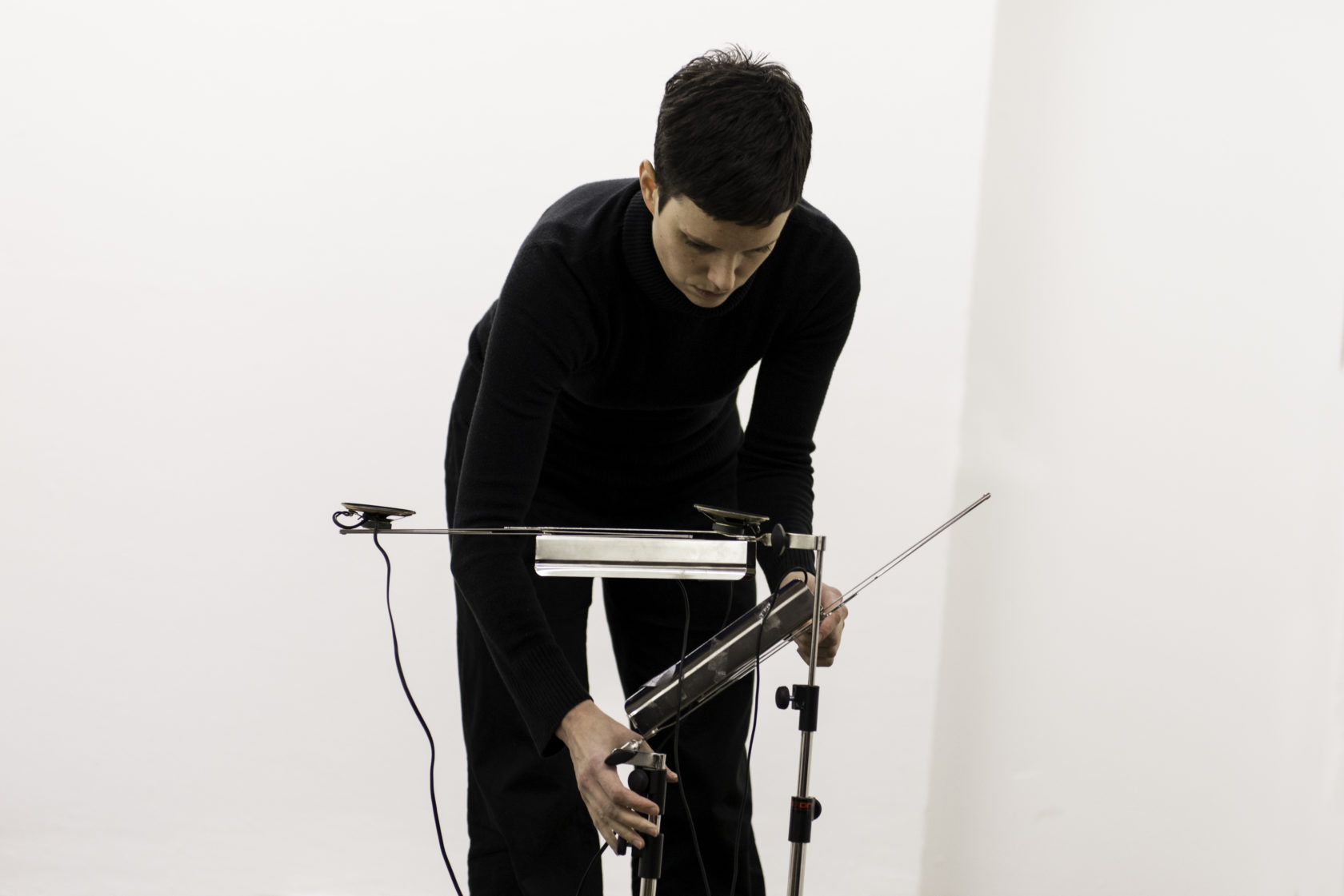 I think my work is often using quite a minimalistic set-up and then starts to explore the different meanings and associations of this set-up, both in sound as with the objects. In the piece “music stands” I just use two metal music stands and small loudspeakers and contact microphones. Then it slowly develops from just setting up the musical stands and amplifying that sound, to two music stands which are folded in strange ways and their sound is connected in a feedback loop. I am interested in these alterations during a piece. I look for transforming the way the sound is produced and try to reorientate the relationships between all elements on stage.