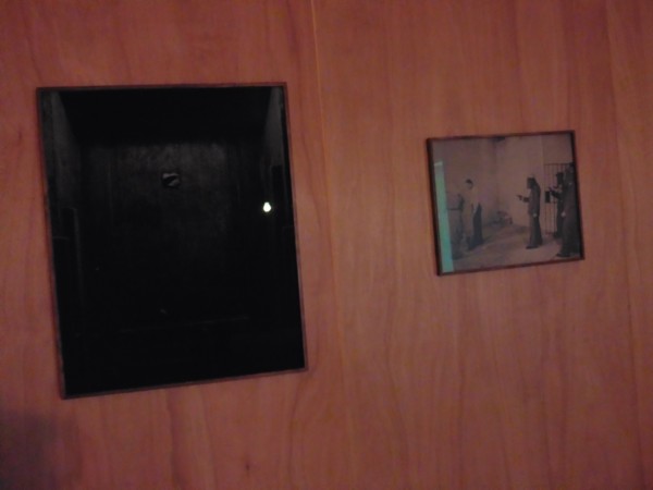 Het zijn allemaal beelden die ik kon herinneren en die als een Shakespeareaans drama aan me voorbij trokken. Het is dat persoonlijke drama dat ook de meeste emoties losmaakt, dat van de bevolking en dat van de gevallen machthebbers. Dat heeft niets met politiek te doen, maar met theater. Dat de media zo gezien ook een afstand creëren tot dit soort gebeurtenissen zie ik niet terug. Wat me het meest intrigeert in de tentoonstelling zijn de ideeën die er achter steken, door het beeldende gedeelte wordt ik niet echt geraakt. Misschien gebeurde dat nog het meest door de ruimte van de Securitate, een met triplex beklede kamer in het souterrain waarin centraal een peertje brandt en in het duister verschillende foto’s hangen, maar dat is dan ook een theatrale opstelling!