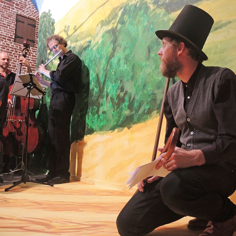 Christopher Kline als rondleider, museumdirecteur, spreekstalmeester, producer en regisseur.