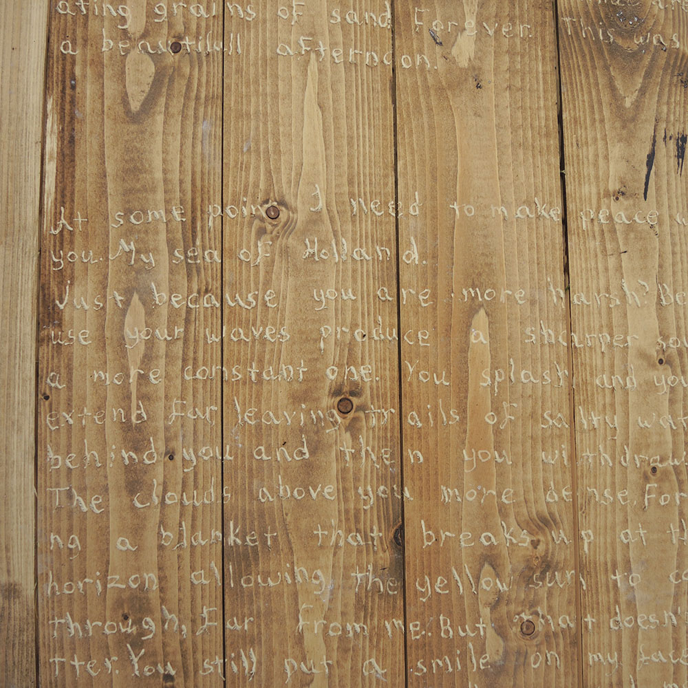 Iliada komt uit Cyprus, waar de oude Griekse geschiedenis zwaar op de moderne cultuur drukt en de vooruitgang zelfs in de weg zit. Haar verlangen naar vernieuwing en kunst bracht haar naar Den Haag. De nabijheid van de zee en de wind in combinatie met het open kunstklimaat in de stad zorgde ervoor dat zij zich ook in Den Haag thuis ging voelen. Geschiedenis en oude culturele symbolen (veelal van Grieks-Cypriotische oorsprong) zijn belangrijke ingrediënten in haar werk. Vandaar haar belangstelling voor De Stenen Kamer. In plaats van oude Griekse tradities kan ze nu reageren op de Hollandse boerencultuur en stedenbouw. Ze ziet de muurtjes van De Stenen Kamer als het verleden en de sculpturen die er nu zijn toegevoegd als het heden. Voor haar eigen bijdrage had Iliada zich voorgenomen om te werken met de bekende Haagse scheiding van het wonen op zand of klei en het daarbij behorende conflict tussen rijk en arm. Aanvankelijk had ze een schaakbord in gedachten met sculpturen als pionnen. Maar het schaakbord werd uiteindelijk een houten platform waarin zij teksten graveerde. Plannen veranderen wanneer je op locatie werkt. De teksten werden geschreven tijdens haar wekelijkse bezoekjes aan het strand. Het zijn een soort dagboeknotities, gedachten over thuis zijn en verandering. En over de continuïteit van het leven. De teksten zijn gericht aan de zee, die vormeloze substantie die Den Haag met Cyprus verbindt.