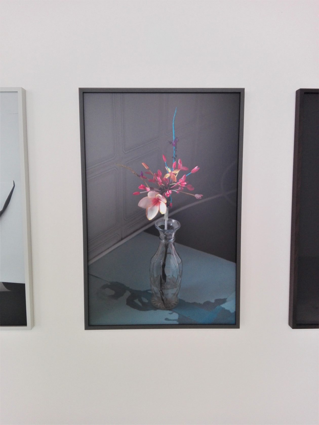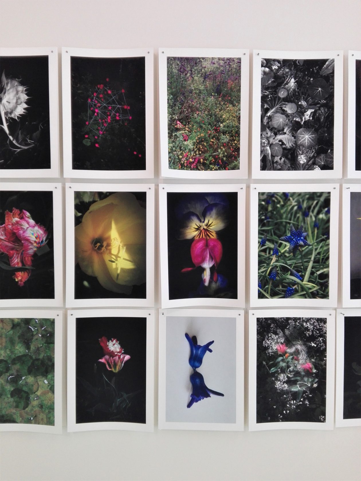 Een van de andere projecten van de kunstenaar The Studio Garden neemt een prominente rol in in de zaal een verdieping hoger. In haar tuin experimenteert Diederix met het kweken van planten en bloemen. Ze probeert de patronen op bloemen te beïnvloeden en maakt daar foto’s van. Tijdens de expositie kan de bezoeker deze gefotografeerde resultaten zelf doorbladeren. Alle experimenten zijn ook te volgen op Instagram en een blog. Ik vind de foto’s prachtig, net als de manier van presenteren. Ze laten mijn gedachten springen en roepen een hoop vragen op, zoals “Is dit echt echt?” en “Hoe krijgt ze die bloem zo groot?”. Echt inzicht krijg je niet in het kweekproces, het draait in deze expositie om de foto’s, het resultaat.
