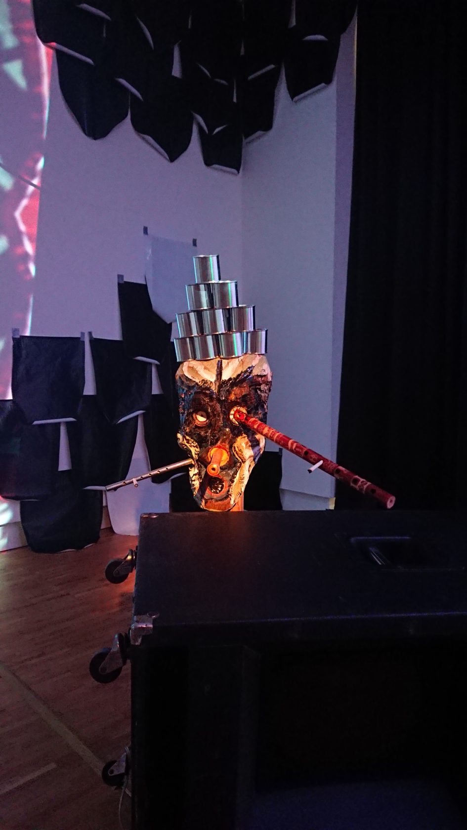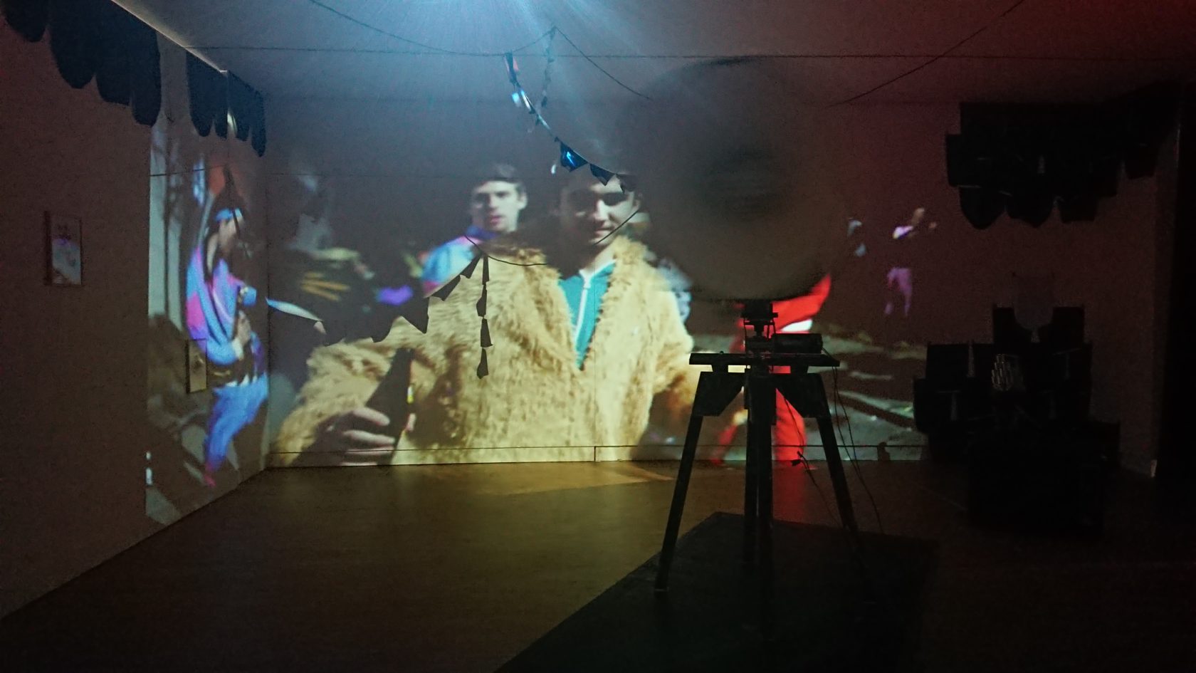In het tweede zaaltje onderzoekt Matthias König betekenissen van traditie, folklore en authenticiteit en gaat hij in op de vraag wat het collectief ‘normaal’ vindt. In een eerder interview vertelde hij over het project Das ist die Tradition. Du füllst das Glas und trinkst es leer dat nu in volle glorie loeit, zoeft en knippert in het duister van het GEM. Naast het lawaai van tientallen carnavalsgroepen in de Zuid-Duitse Fastnacht, gekleed in mystieke kostuums en met uit hout gesneden maskers, hoor je ook het geluid van een bonte mix van traditionele Zuid-Duitse carnavalsliederen. Königs stijl is ‘tongue-in-cheek’ maar ook plechtig: een traditioneel ogend, eng en oud masker wordt onheilspellend door het lichtenspel op zijn gelaat, maar ook teniet gedaan door de fluit (met een shaggie) in zijn linkeroog en de tinnen kermisblikjes op zijn hoofd. Het lijkt erop dat de rituelen van kerk en kermis helemaal niet zo ver uit elkaar liggen.