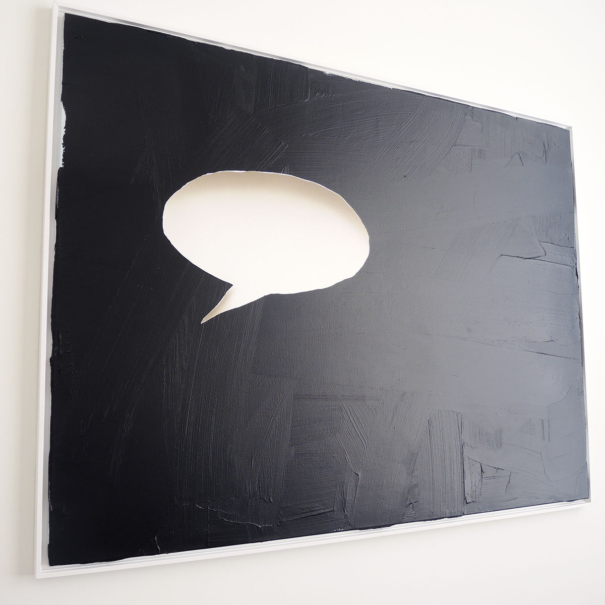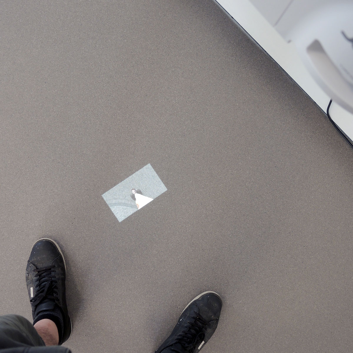 Het enige aanwezige werk van Bram Kuypers kan ik niet bekijken omdat het voor mij te sterk overeenkomt met ‘Strassenbannhaltestelle’ van Joseph Beuys, waar ik net onderzoek naar heb gedaan en waar ik binnenkort een artikel over zal schrijven. Het heeft er misschien niets mee te maken, maar ik kan het simpelweg niet anders zien. Het nadeel van veel tentoonstellingen bekijken is dat er altijd verbanden zijn met iets dat je eerder hebt gezien.
