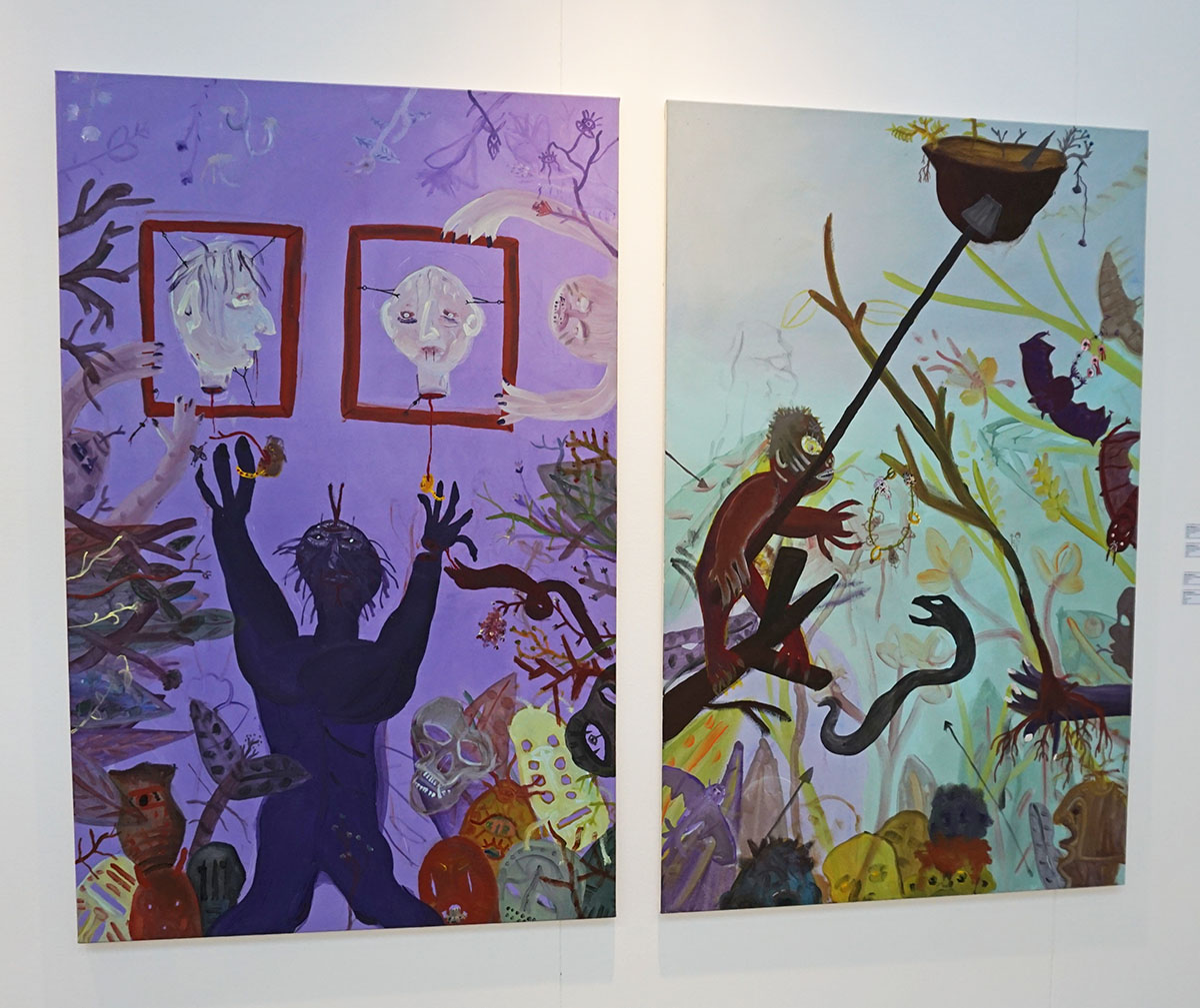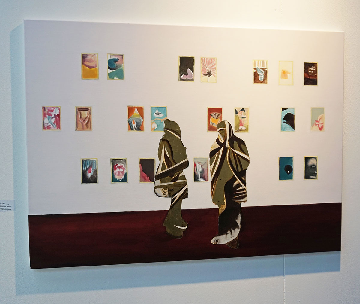 En ondanks deze schijnbare willekeur valt er heel wat te ontdekken op Art The Hague. Eenmaal in de stand beland, valt het oog soms op een kleine of onopvallend werkje dat ontroert, verrast of een glimlach veroorzaakt. Voor iemand die het kaf van het koren kan scheiden, is een kunstbeurs een leuke exercitie. De getoonde afbeeldingen bij dit artikel zijn er het resultaat van. Net als bij een eindexamententoonstelling bij een kunstacademie voel je je als bezoeker al snel een jurylid in een Art’s Got Talent Show. En als je een beetje goed om je heen luistert, hoor je dat er vaak snoeihard wordt geoordeeld: “Dit is helemaal niks. Pure kitsch.” En ook nieuwe talenten worden hier snel opgepikt. Zo zien we de verfrissende schilderijen van de pas afgestudeerde Sam Hersbach, die volgende week ook bij de genomineerden voor de Koninklijke Prijs voor Vrije Schilderkunst te zien zal zijn.