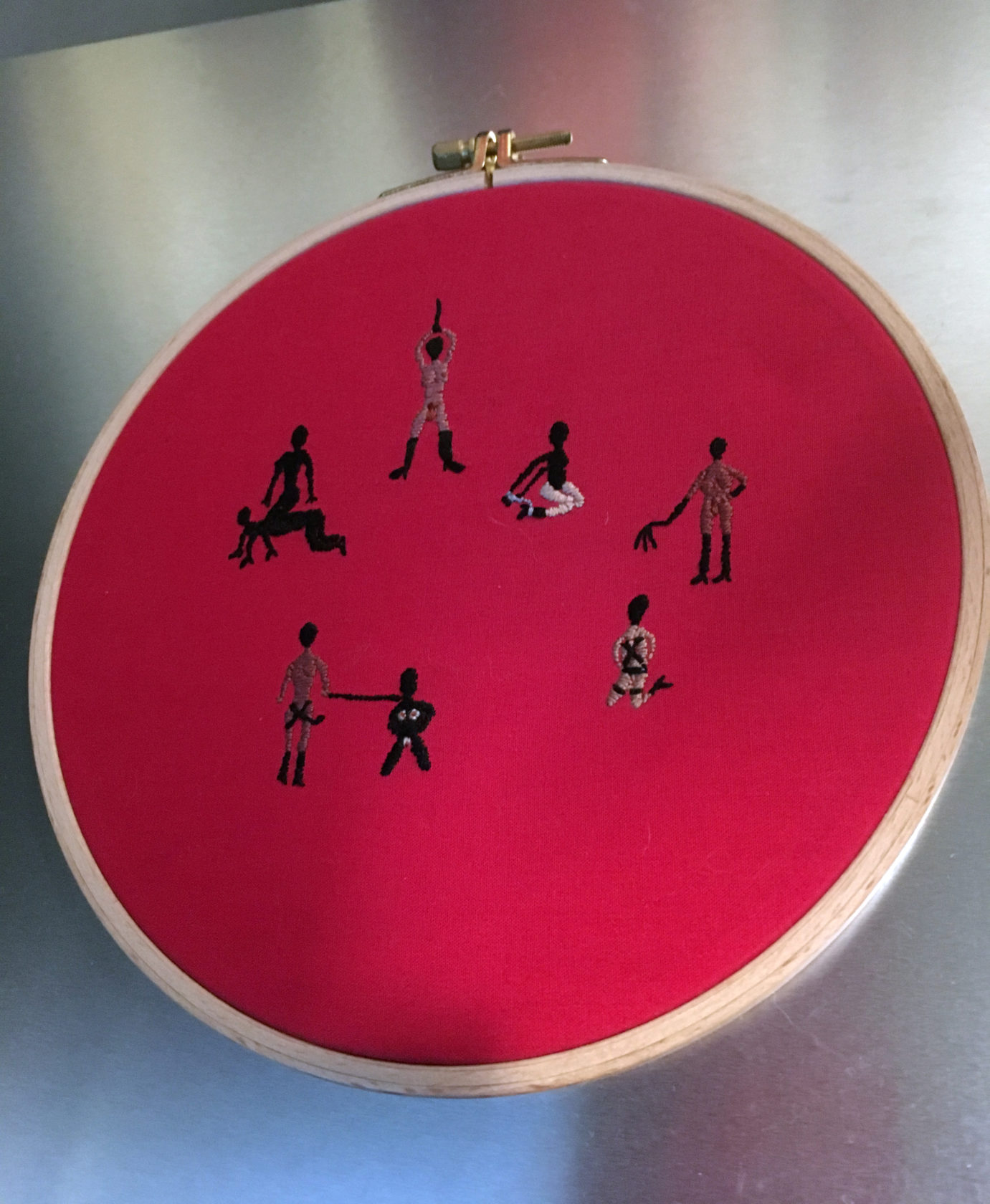 These “cute” embroideries by Ugemfo I came across at „Miete Strom Instagram“ (Rent Electricity Instagram) by Walch&Winkler. From their Facebook event: “„Miete Strom Instagram“ is an event designed to reflect the work and living conditions prevalent among artists in Berlin. (…) Beyond their artistic and geographic context, the works on show share a common functionality, reflecting the circumstances of their production. This is evident in their manifestation in the form of lamps, shoes and clothes, the objects highlight the artist’s need to create alternative means of income. The objects assembled in “Miete Strom Instagram” reveal a host of strategies and work methods that have arisen out of necessity among the artistic community.”