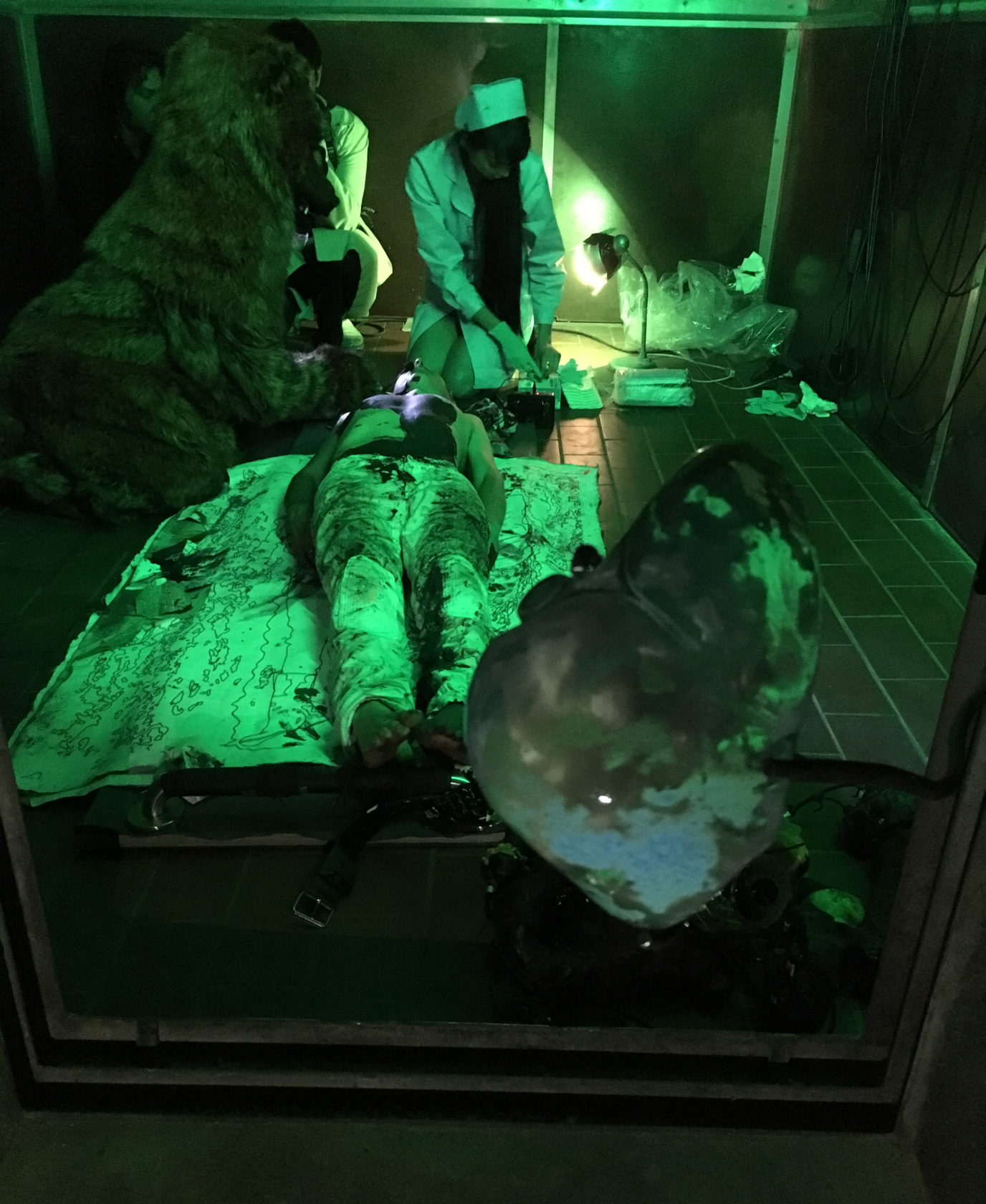 In the evening we visited the Bärenzwinger. The former bear enclosure of the Berlin City Bears has been open since September 2017 as a cultural site for site-specific contemporary art in Berlin-Mitte and was now occupied by Mariechen Danz, Johannes Paul Raether and KAYA, with three continuous performances in the linked indoor and outdoor residences of which I will highlight one: