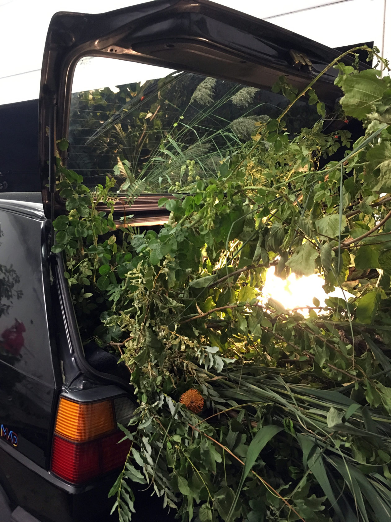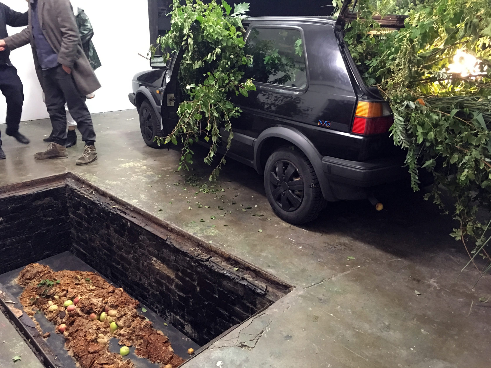 Here we visited the exhibition “Digesture” where a.o. Kinga Kielczynska was present with a new car installation overgrown from the inside, this time with content from her immediate environment (earlier I reported for J&T on a variation of this work during the last Manifesta in Palermo). At closing time the work was driven into the garage, where I think it showed off best.