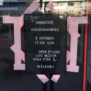 Just after the opening of Trixie, two new art venues popped up in The Hague this week. New artist collective ANNASTATE had their housewarming party last Friday. ANNASTATE exist of 8 young artists who all graduated from the KABK (Trijntje Noske, Gideon van Oosten, Janne Schippers, Luuk Kuypers, Cyril Rafaël Vasilyev, Sasha Zalivako, Zahar Bondars, Heleen Boeken). “ANNASTATE is looking from the human connection in art through participatory projects and social interventions.”
