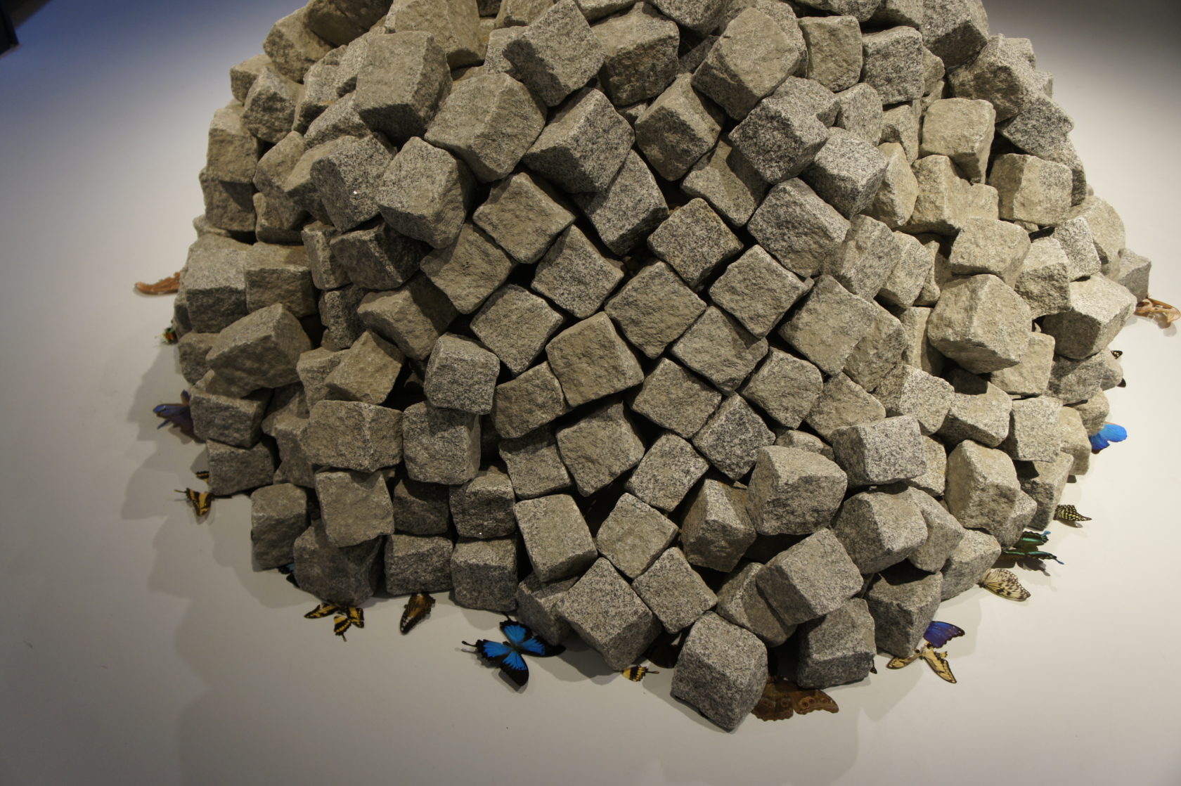 We zouden daarom het assemblagebegrip van Deleuze beter kunnen toepassen op het zien van de assemblage waarin we zelf aanwezig zijn in plaats van de assemblage vanaf de buitenzijde te beoordelen. Het territorialiseren van een expo vindt plaats als we ons in de expo begeven. Het paard van de Bruykere is , als het hoogte punt van de expo, tevens een appel aan de toeschouwer. Niet een morele boodschap maar een esthetische. Er zijn meerdere werken aanwezig met wat in Metropolis M, een animistische uitstraling wordt genoemd. Bijvoorbeeld de werken van Ricardo Brey of José Bedia. Werken met elementen uit de natuur en van gevonden voorwerpen. En je zou dit binnen deze tentoonstelling een tweede thema, naast het sociaal engagement, kunnen noemen. Het is kenmerkend, zoals hierboven beschreven is, dat ook dan door Metropolis M deze animistische inslag wordt terugverwezen tot de persoonlijke wereld van de kunstenaar. Juist het animisme verwijst naar een verbinding van het niet-wetenschappelijke met het menselijke. Waar de werken van het sociaal engagement als snel een, in de zin van Heidegger, technische waarheid hebben. een zekerheid van oorzaak en gevolg, is dat bij het animisme juist niet aanwezig. We moeten ons dus niet laten verleiden tot het objectiveren van een werk maar het zien in haar verbanden en haar assemblage om toch tot een deterretorialisering, die ons uit het technisch/economische kan tillen te komen. Dit kan alleen door in de expo deel uit te maken van de assemblage. Door jezelf over te geven aan het niet rationele. Maar ik geef toe dat het te midden van de activistische werken erg moeilijk is en zeker als zelfs de animistische werken puur als losse objecten, op gepaste afstand van elkaar, getoond worden.