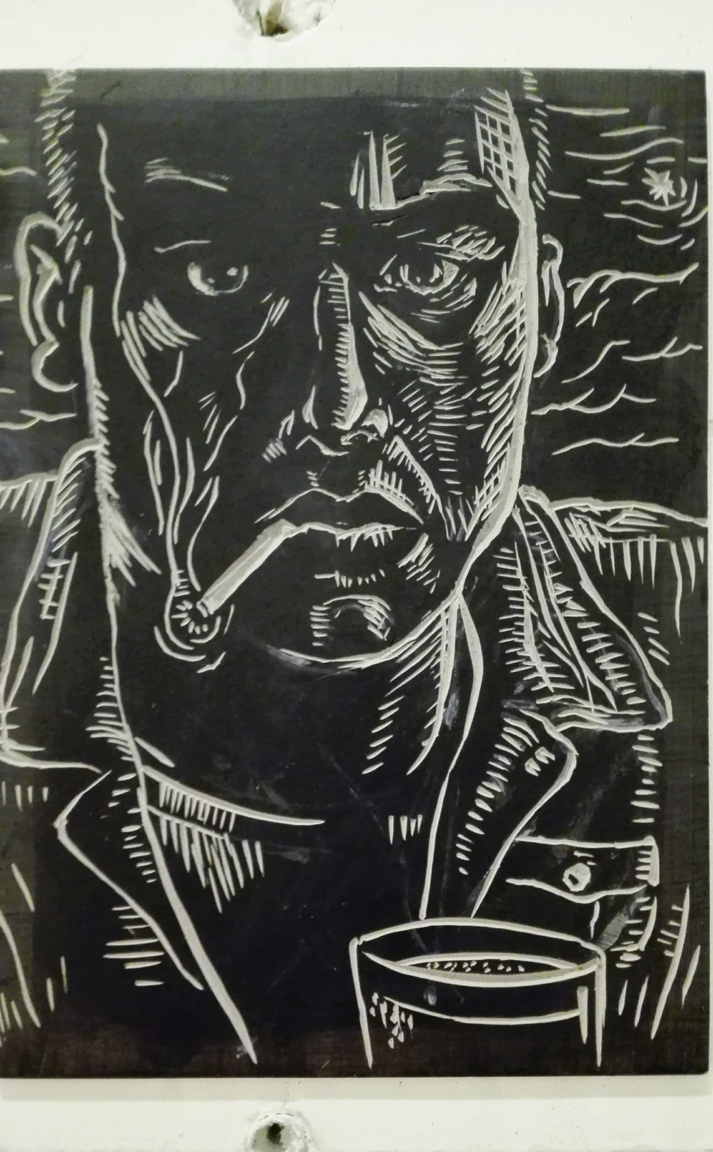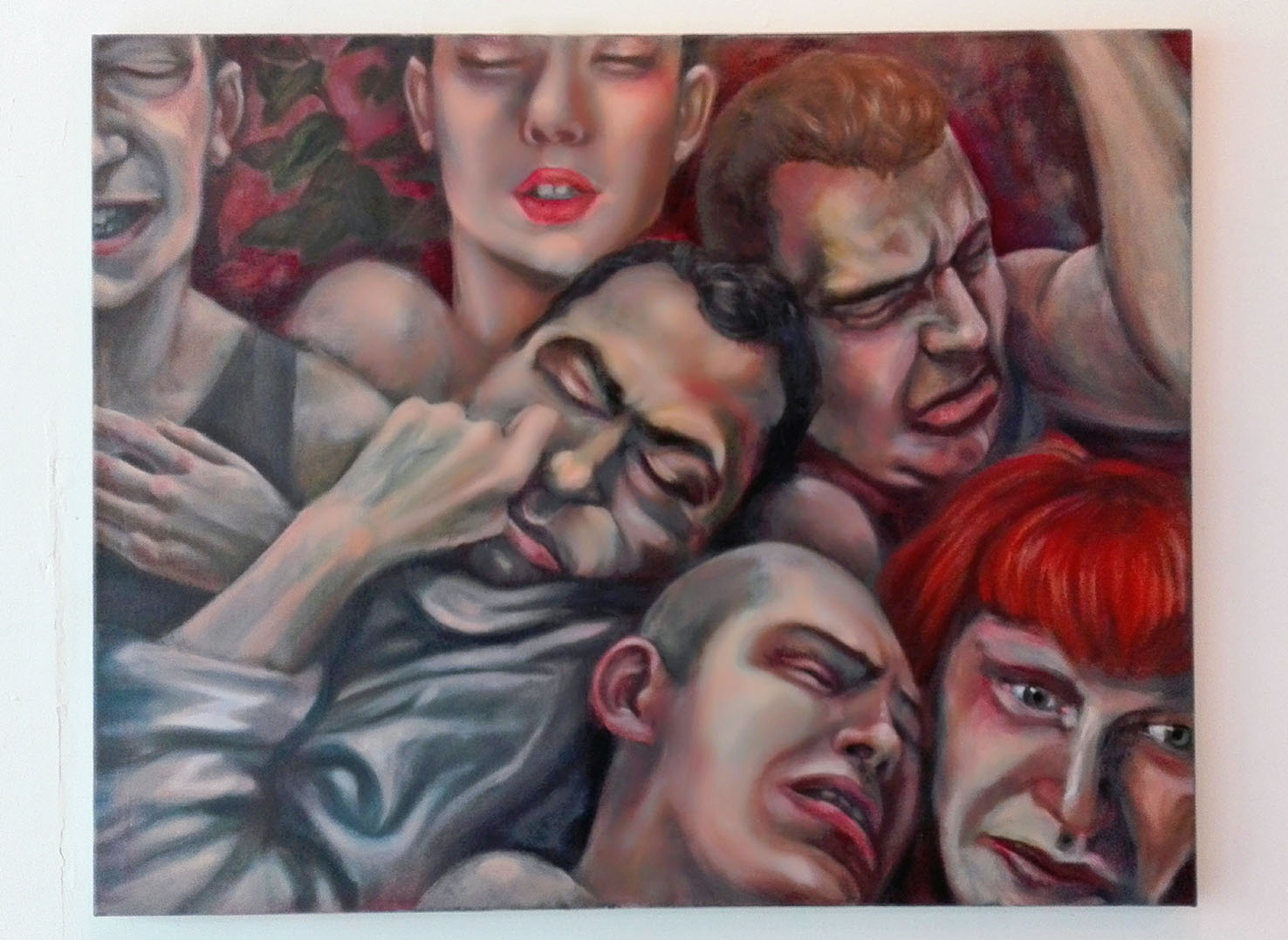 Sam Andrea schilderde op zijn eindexamenshow zeer grote doeken met manshoge figuren, soms (half) gekleed of naakt. Deze, maar ook kleinere stukken, werden getoond. De olieverfschilderijen werden afgewisseld met houtsneden. Dat wil zeggen, de uitgesneden en geïnkte blokken, geen afdrukken op papier.