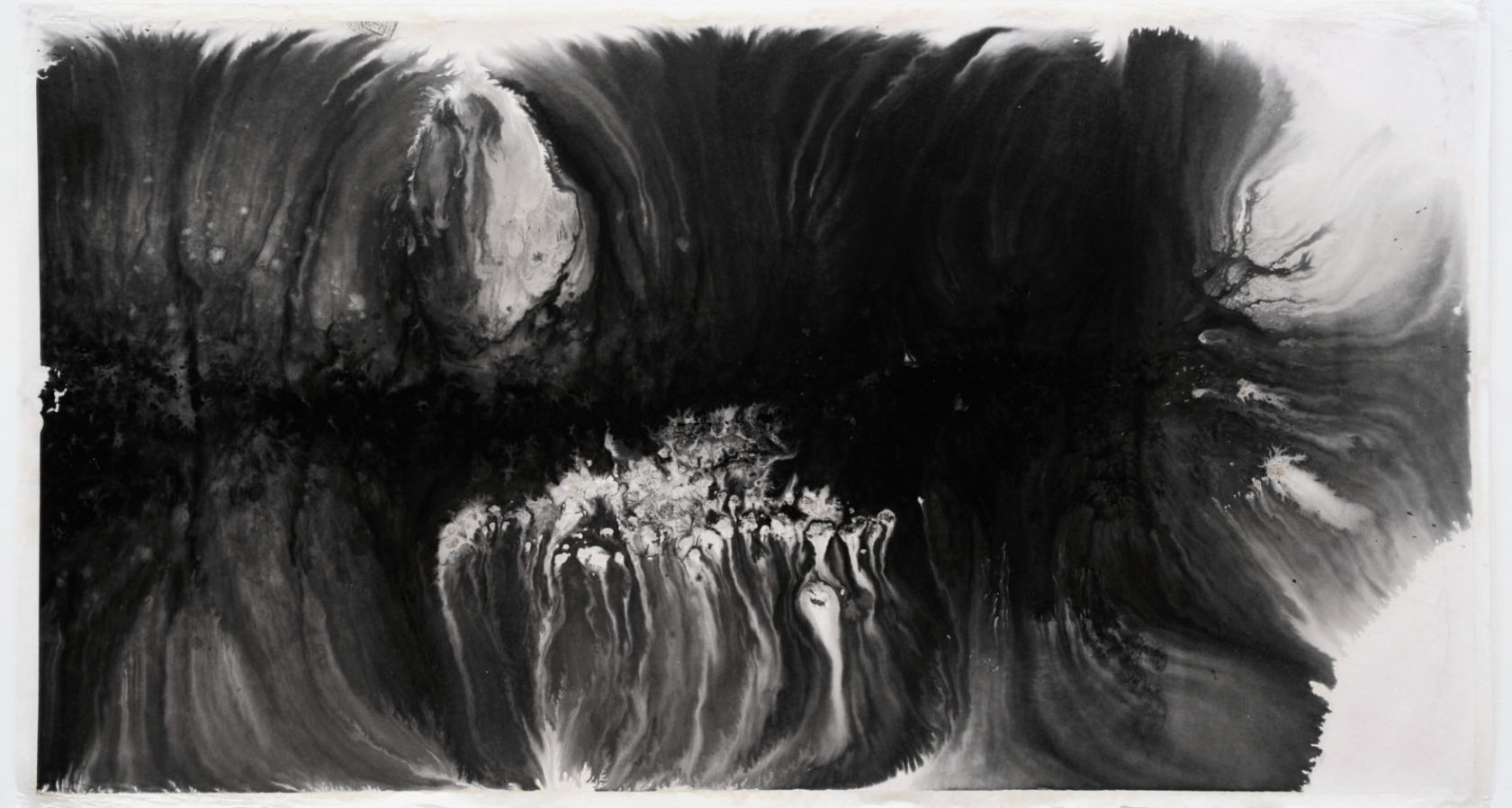 Een zelfde imaginaire reis zou je kunnen af leggen in de landschappen van de Chinees-Nederlandse Ma Hui (1958). Haar uit talloze zwart-grijze gradaties geschapen wereld van inkt, water en papier, stimuleren om eindeloos details te bestuderen.