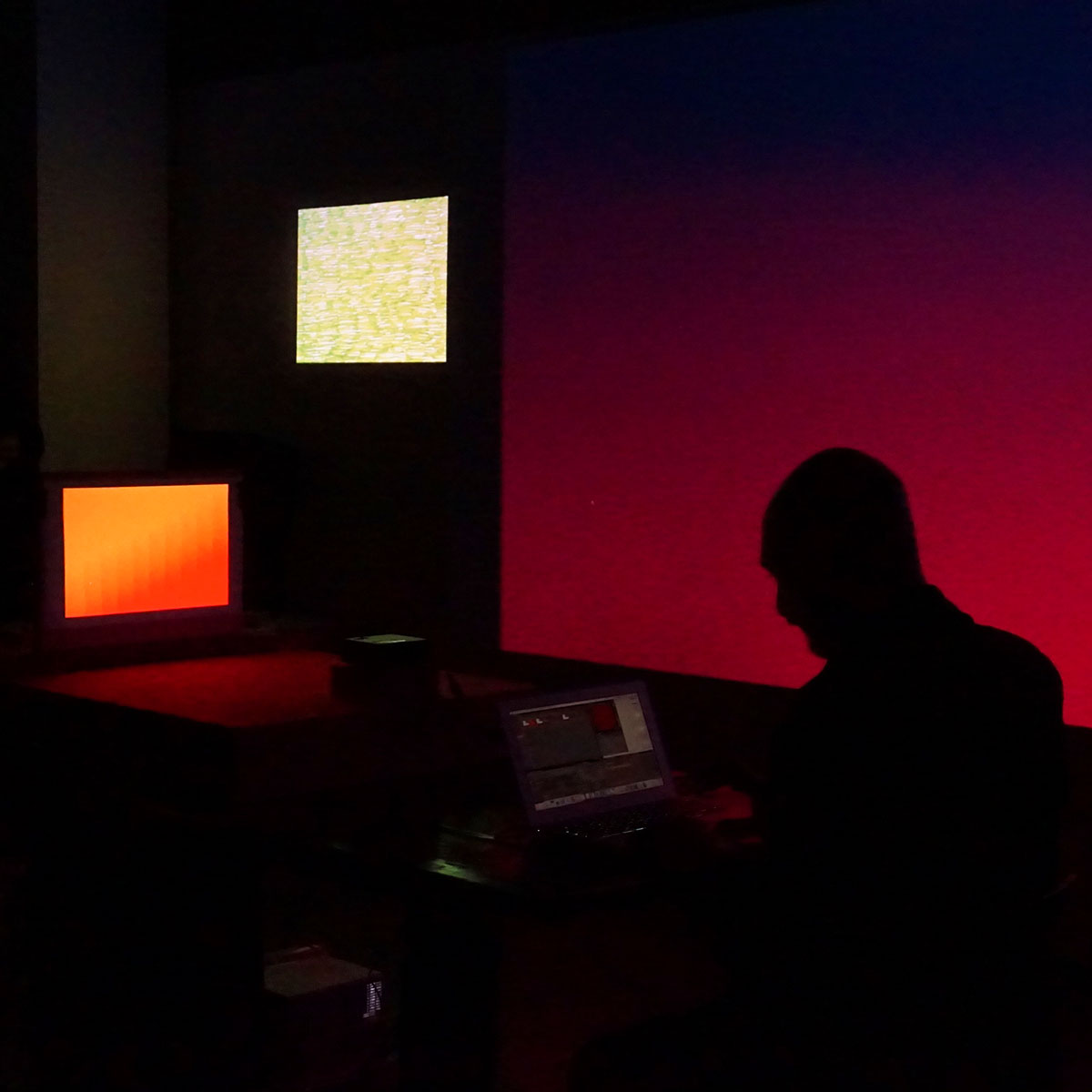 Mark IJzerman projecteert het drieluik Cantus Viscous waarin videobeelden uit het rijke LIMA/Montevideo archief worden bewerkt. Een videosynthesizer wordt gevoed met cassettebandjes waarop geluiden uit het videoarchief staan. Vervolgens vinden er bewerkingen plaats op het beeld door middel van filters en andere zaken waar ik niets van begrijp. Het proces levert een oneindige stroom van bewegend beeld op met patronen die soms blijven plakken en dan weer veranderen in een nieuwe fragmentarisch orde. En dat blijft ook mijn probleem bij dergelijke voorstellingen. We weten nooit precies waar we naar kijken en wat het gevolg is van menselijk handelen en wat door computers wordt gegenereerd. We weten dat er een meestal analoge bron is en dat er digitale data wordt verwerkt en dat het resultaat ons uiteindelijk weer analoog in beeld en geluid wordt voorgeschoteld. Over de probleemstelling of het beoogde resultaat komen we weinig of niets te weten waardoor het verschil met de totale willekeur voor de toeschouwer onmerkbaar is. En ook hier weten we niet wat er live gebeurt of wat voorgeprogrammeerd is en waarom dergelijke presentaties altijd langer duren dan onze nieuwsgierigheid aan kan. Halverwege dwalen de gedachten af naar andere plaatsen in tijd en ruimte. Een effect dat vroeger met vloeistofdia’s werd gerealiseerd.