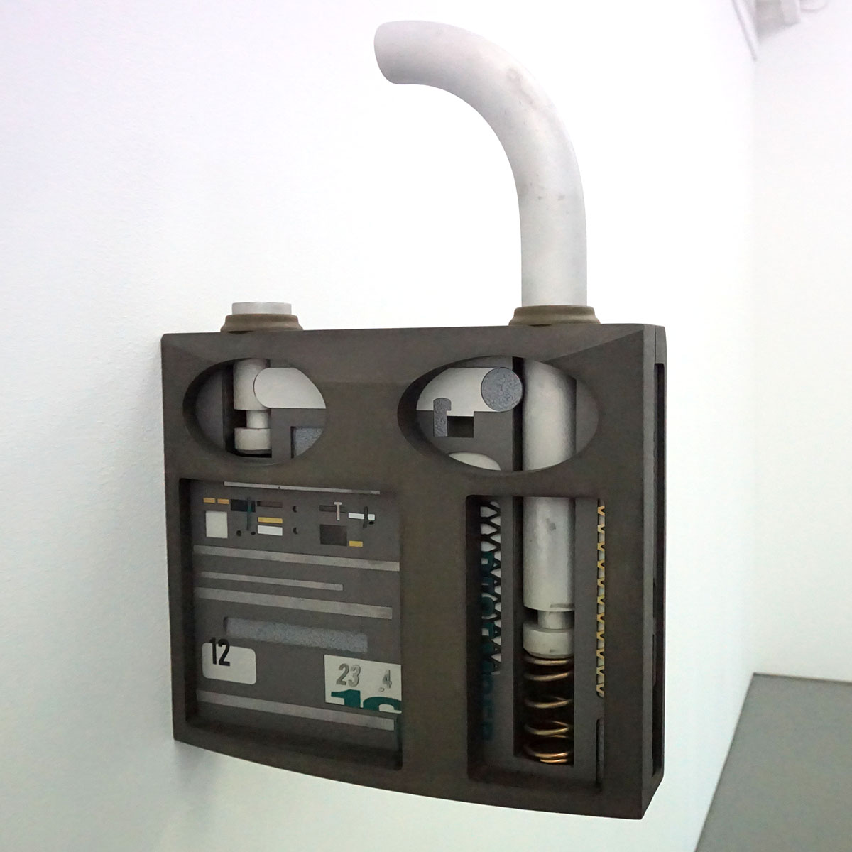 Waar moeten we naar kijken? Naar de binnenkant of naar de buitenkant van een object? Dat hangt er bij Magali Reus misschien vanaf of je een liefhebber bent van formeel minimalisme of van de verborgen werking van het mechaniek en de esthetiek van techniek. Maar misschien ook niet. Ik bekijk beide kanten. En zo nodigt de tentoonstelling de bezoeker uit om voortdurend het eigen perspectief te herzien. Soms leidt het er toe dat ik de werken ook letterlijk vanuit een andere hoek bekijk of fotografeer. Soms blijf je bij een bepaald werk langer hangen dan bij een ander zonder dat je weet waarom. En soms wil je iets van dichterbij bekijken of weten hoe het is gemaakt. Maar als je niet de intentie hebt om het na te maken, waarom zou je het dan willen weten?