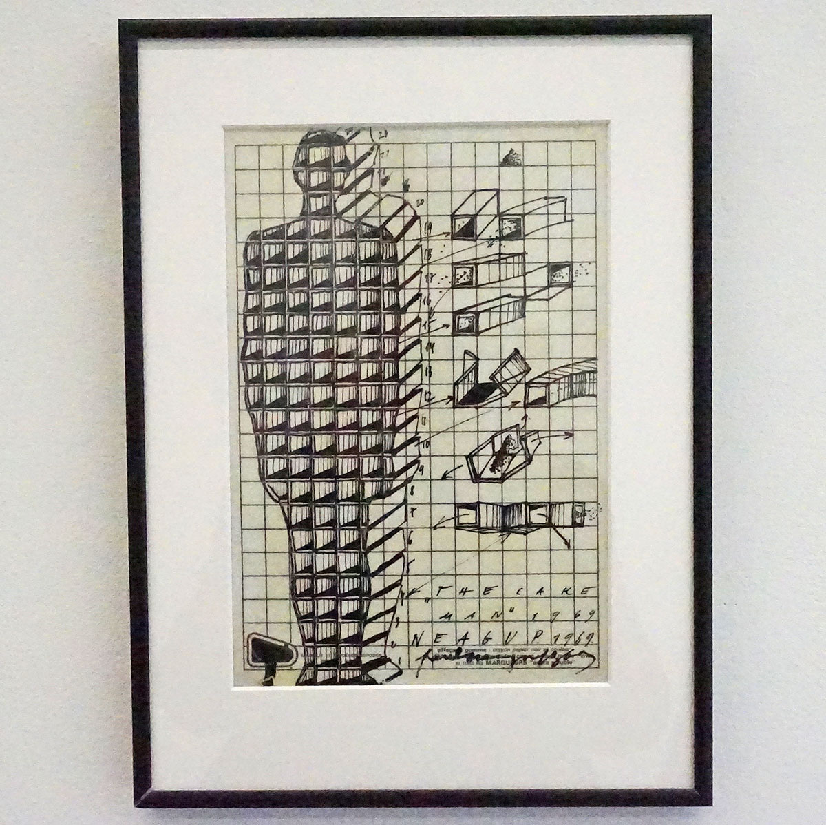 De tentoonstelling bij PARTS volgt de meest in het oog springende conceptuele motieven en terugkerende thema’s uit verschillende creatieve periodes in het leven van Neagu, voor wie levensbeschouwing en kunstenaarschap organisch in elkaar overvloeiden. Antropocosmos is een bijna museale tentoonstelling geworden en geeft, hoewel bescheiden van omvang, een opmerkelijk compleet beeld van zijn werk. Het werk doet me terugdenken aan The Alchemical Wedding, de overzichtstentoonstelling van de Tsjechische kunstenaar Jan Svankmajer dat ik vorige maand bezocht en dat nog even bij Eye in Amsterdam is te zien. Antropocosmos verleidt de kijker om binnen te treden in de conceptuele denkwereld van Neagu. Het werk heeft een onderzoekend karakter maar is tegelijkertijd zintuiglijk aantrekkelijk en zelfs verleidelijk. De tekeningen en sculpturen zijn bescheiden van formaat en humaan, maar ook heel stellig en voor een deel volstrekt ondoorgrondelijk.