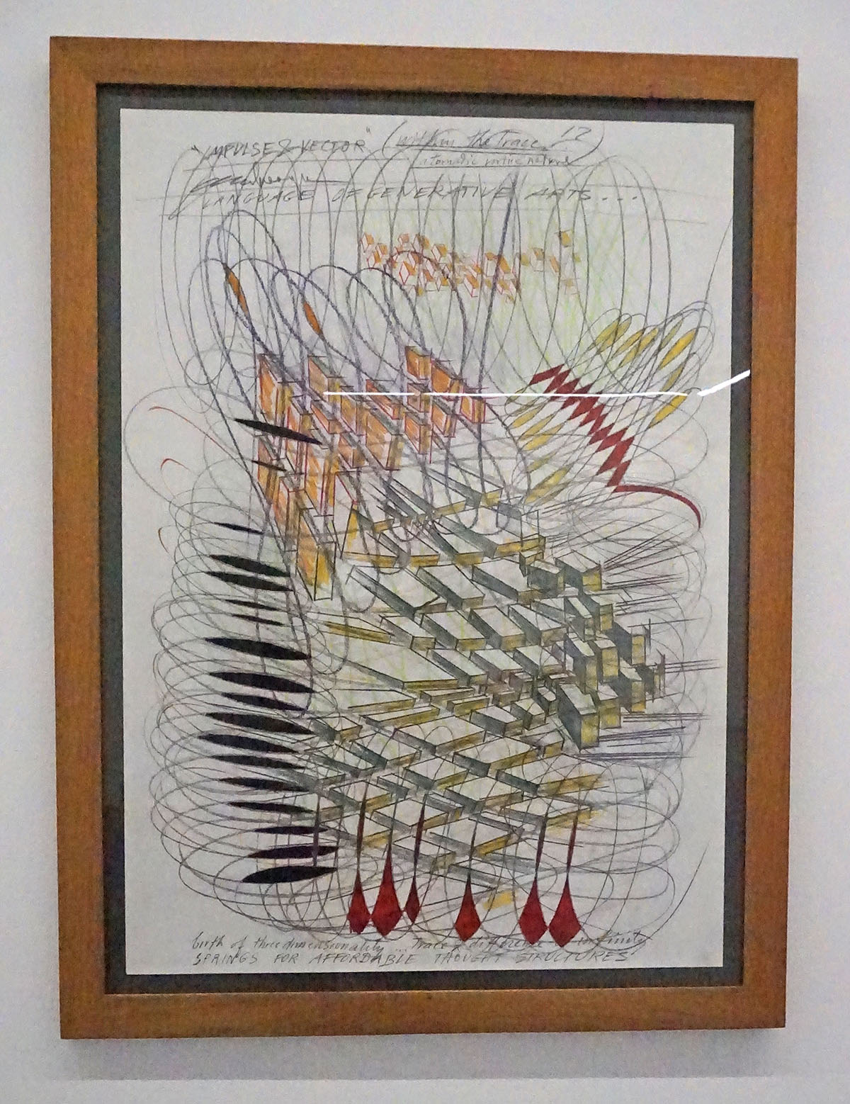 Zo worden we geconfronteerd met de hyphen als basisvorm, een eenvoudige houten constructie die terugvoert naar Roemenië waar het als een soort ploeg dienst moet hebben gedaan, hoewel het niet duidelijk wordt of het een strikt functioneel object is of dat het ook andere culturele betekenissen in zich draagt. Maar de constructieve vorm is hier ook een visualisatie van het conceptuele DNA waarop Neagu zijn theoretische beschouwingen baseert. Het ruimtelijke ‘koppelteken’ verbindt alle gedachten en verbeeldingen die in de kunstenaar opkomen. Hoewel het werk van Neagu door conceptuele kaders wordt bepaald, komen veel tweedimensionale en tactiele werken impulsief tot stand. Dat zien we ook terug in de performances die Neagu op locatie uitvoert en die een holistisch en ritueel karakter hebben. De hyphen verbindt het denken met het onderbewuste en het formele aspect van de sculptuur met de symboliek van het beeld om tot een groter bewustzijn te komen. Naast de hyphen komen ook celdelingen, (tapijt)patronen en de oneindige kolom van Brancusi in de tekeningen voor. De combinatie van toegankelijkheid en ondoorgrondelijkheid maakt het werk woest aantrekkelijk. Het zet aan tot actief kijken, tot denken en tot voelen. En voor wie zich informeert met de theoretische achtergronden wellicht ook tot ‘puzzelen’. Of tot een oneindige metafysische zoektocht naar wat er achter de zintuiglijke waarneming verscholen ligt.