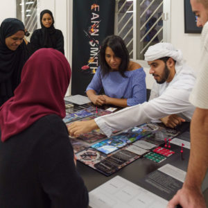 In August 2018, Oddkin got invited to present our board game Today’s Success is Tomorrow’s Disaster at the Fikra Graphic Design Biennial: Ministry of Graphic Design 01 in Sharjah, United Arab Emirates. Thanks to Stimulering Fonds and Stroom Den Haag, we had the opportunity to travel there and stay for a week to present our work, meet with fellow artists, curators as to see ‘new perspectives’ and learn ‘new insights’.