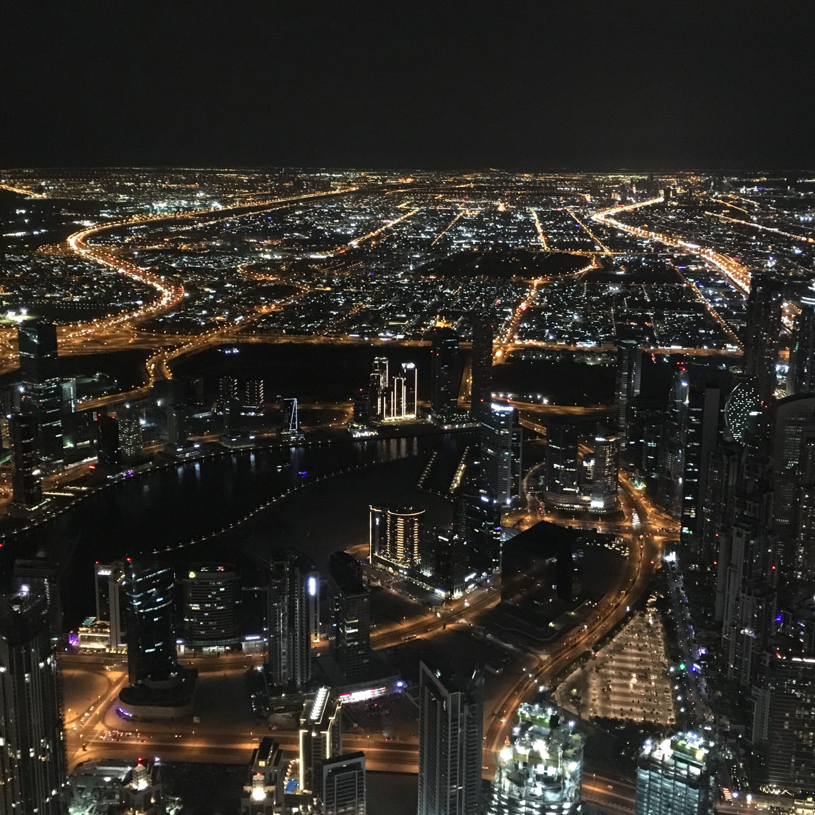 “Madam in the middle, thumbs up!” says the photographer at the top of the BurjKhalifa building, 584 meters high, as of writing the highest observation point in the world. Natela squats beside Marton and Roel, while we are struggling to hold back the outburst of laughter. We put our thumbs up, exposure flashes many times, while the tower slowly vibrates beneath us. Marton has just blown out the improvised candles by the iPhone flash on his 30th birthday cake, that we smuggled in. Below us, the dystopian body of Dubai spreads out. The illusion of dazzling prosperity with the surprisingly convincing luxury kitsch. When you go “all the way to the top”, you can’t be sentimental enough to comprehend that we are at the highest point of a slowly sinking ship.