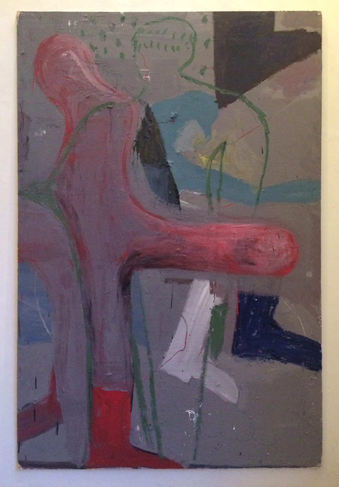 Gelukkig sprak ik David pas nadat ik eerst had rondgekeken en had getwijfeld. Het non-academische van zijn werk betekende namelijk het aanwakkeren van een onbepaald gevoel bij de kijker. Het werk is niet perse zo, en niet per definitie zus, het is niet 1, 2, 3 te lezen en zorgt voor geboeide twijfel. Gaat het om de afbeelding en de relatie tussen de figuren, gaat er een verhaal achter schuil? Of gaat het om het schilderachtige en het plezier in het werken? Je wordt op verschillende gedachtes gezet en hinkt heen en weer.