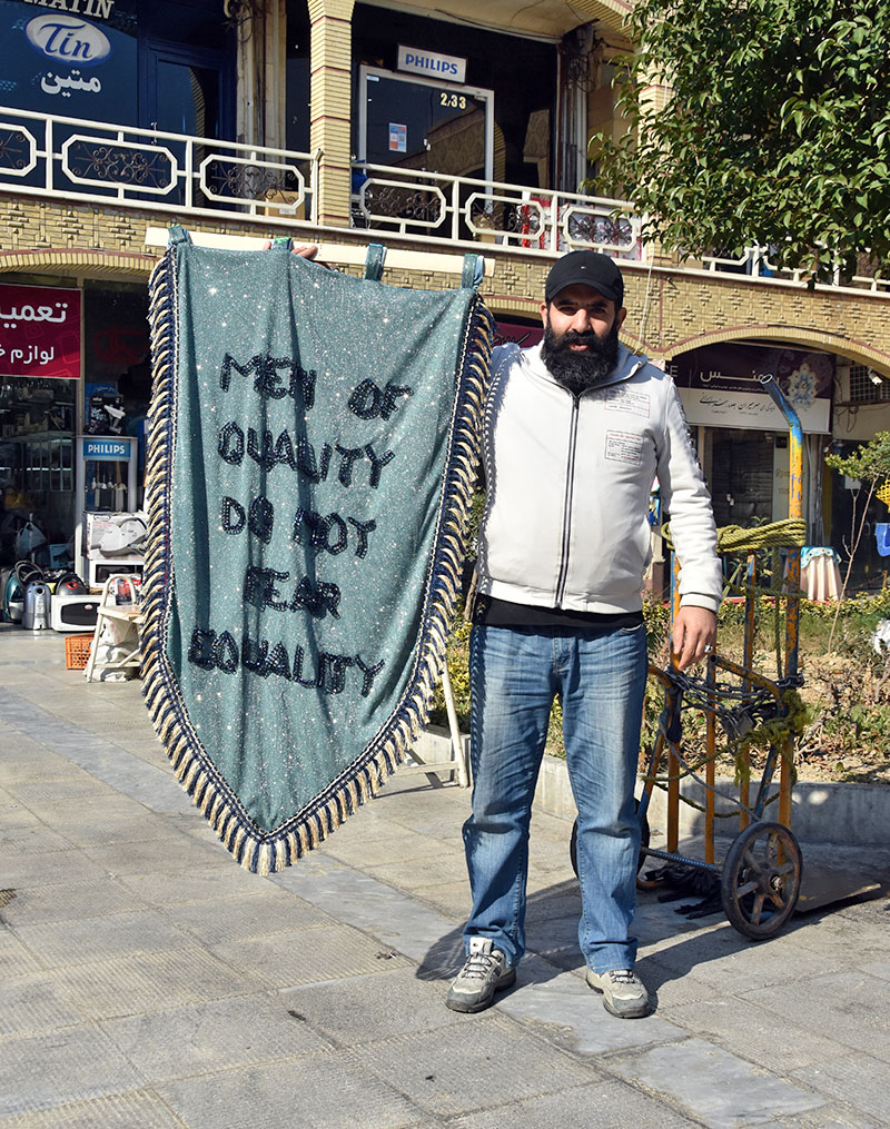 Tijdens mijn lezing in de galerie had ik een man ontmoet en hij wilde mij graag helpen met het fotograferen van mijn werk. Het was het type ‘steenrijke, succesvolle dertiger met hele dure kleding’. Aangezien alle hulp meer dan welkom is op zo’n moment, spraken we twee dagen later samen met een vrijwilliger af om de door mij gemaakte banner in de openbare ruimte vast te leggen. Al snel werd duidelijk dat hij eigenlijk helemaal niet gemotiveerd was om met de banner op de foto te gaan en hij negeerde de vrijwilliger volkomen tijdens alle gesprekken en fotografiemomenten. Ook de vrijwilliger zelf viel dit op en deze gaf aan dat dit geen normale houding was. Hij bleek op iets heel anders uit: “gezelligheid”. Na meerdere dagen bestookt te worden met door mij genegeerde appjes, telefoontjes en bezoeken aan de galerie met meegebracht eten, was op een gegeven moment ook voor mij de maat vol en heb ik hem niet zo subtiel duidelijk gemaakt dat ik hier niet op zat te wachten. Maar hij wilde me zo graag uitnodigen voor drankjes! Liefst ‘s avonds laat, bij hem of bij mij… En hij wilde ook graag naar Europa komen! Mijn alarmbellen rinkelden steeds harder. Het was tijd om hééél duidelijk te zijn. Daarna was hij de gebeten hond en ik de bijzonder onbeleefde, ondankbare vrouw die misbruik had gemaakt van zijn gastvrijheid. In een land waar vrouwen voor de wet half zoveel waard zijn als een man en waar vergelding niet ongebruikelijk is, voel je je dan toch minder comfortabel. Uiteindelijk bleek hij zelfs op meerdere paarden te wedden en had hij ook bij de Kooshk Residency een andere Westerse vrouw ‘uitverkoren’ om haar op irritante wijze het hof te maken… Hij wilde ook haar natuurlijk graag komen opzoeken in Europa. Behalve een wandelende portemonnee voel je je dan ook nog een wandelende visumverstrekker.
