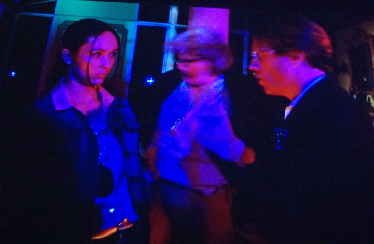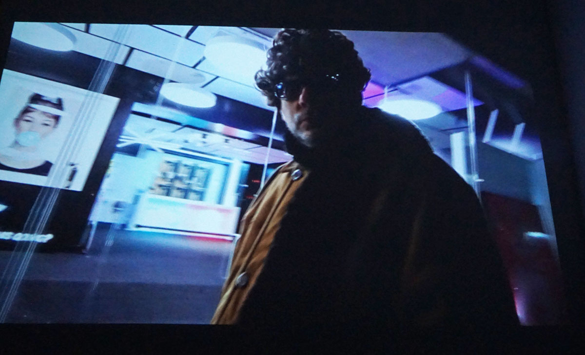 De film duurt bijna twee uur. En zo zijn er nog twee zalen met feature films in de langwerpige tentoonstellingsruimte bij Nieuwe Video. In het achterste zaaltje bekijken we de belevenissen van Foxfur, een jonge vrouw die in verschillende scenes door verschillende actrices wordt gespeeld. Haar mannelijke tegenspeler heeft zijn hoofd tijdens een gezamenlijk autoritje ongezien kaal geschoren (What’s with your hair?). Het houdt niet op. En daar zit natuurlijk het gevaar. We worden overladen met ongeloofwaardige scenes en effecten in een eindeloos plot. Na ons ruim een uur kostelijk te hebben vermaakt, komt de hamer die ons murw mept. En niet veel later verlaten wij geheel genezen en voldaan het pand. De bestuursvergadering blijkt afgelopen. De vrouw die ons binnenliet, kwam tijdens een van de films nog even zeggen dat we de deur na afloop gerust achter ons dicht mochten trekken, dus dat doen we.