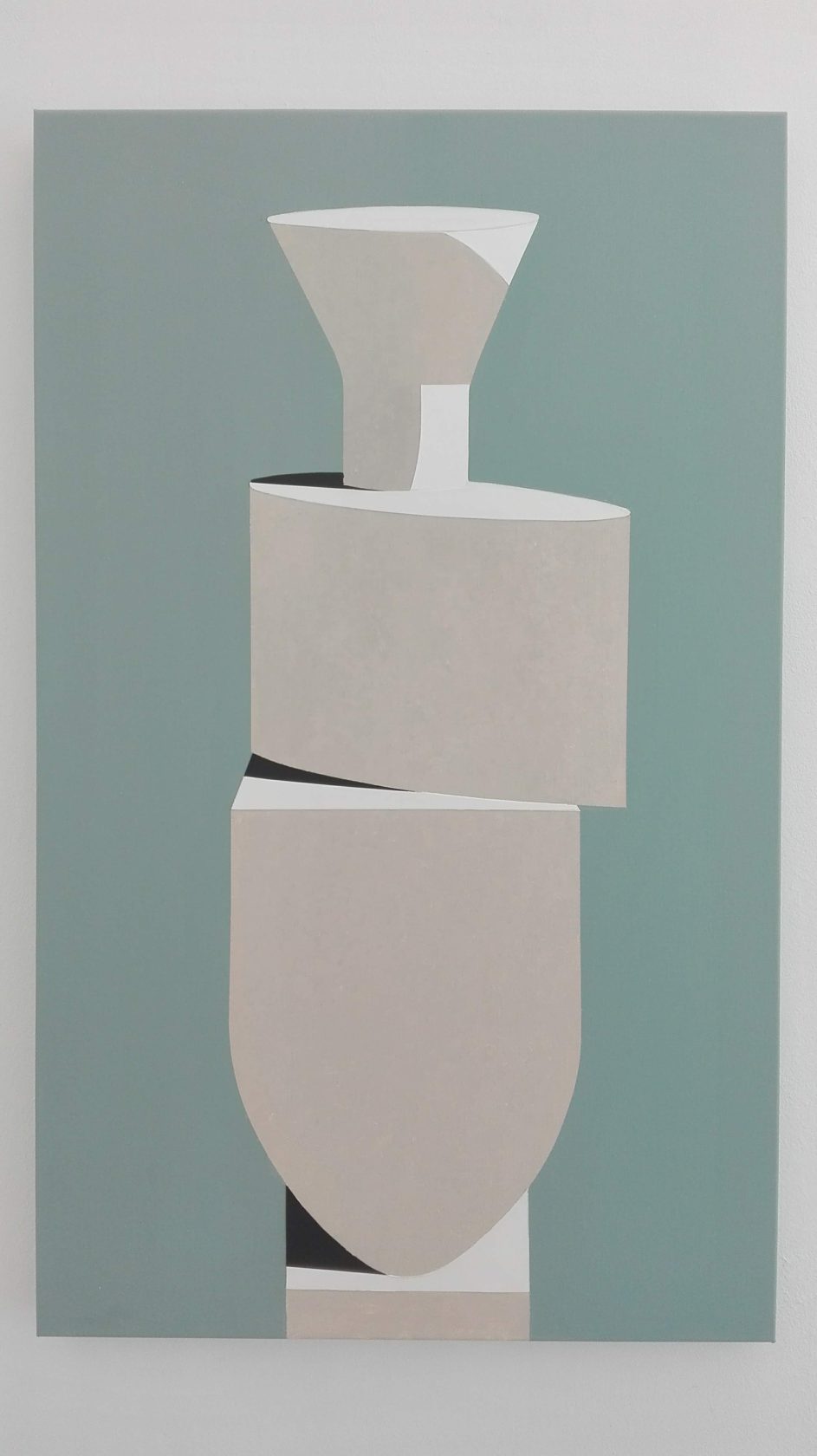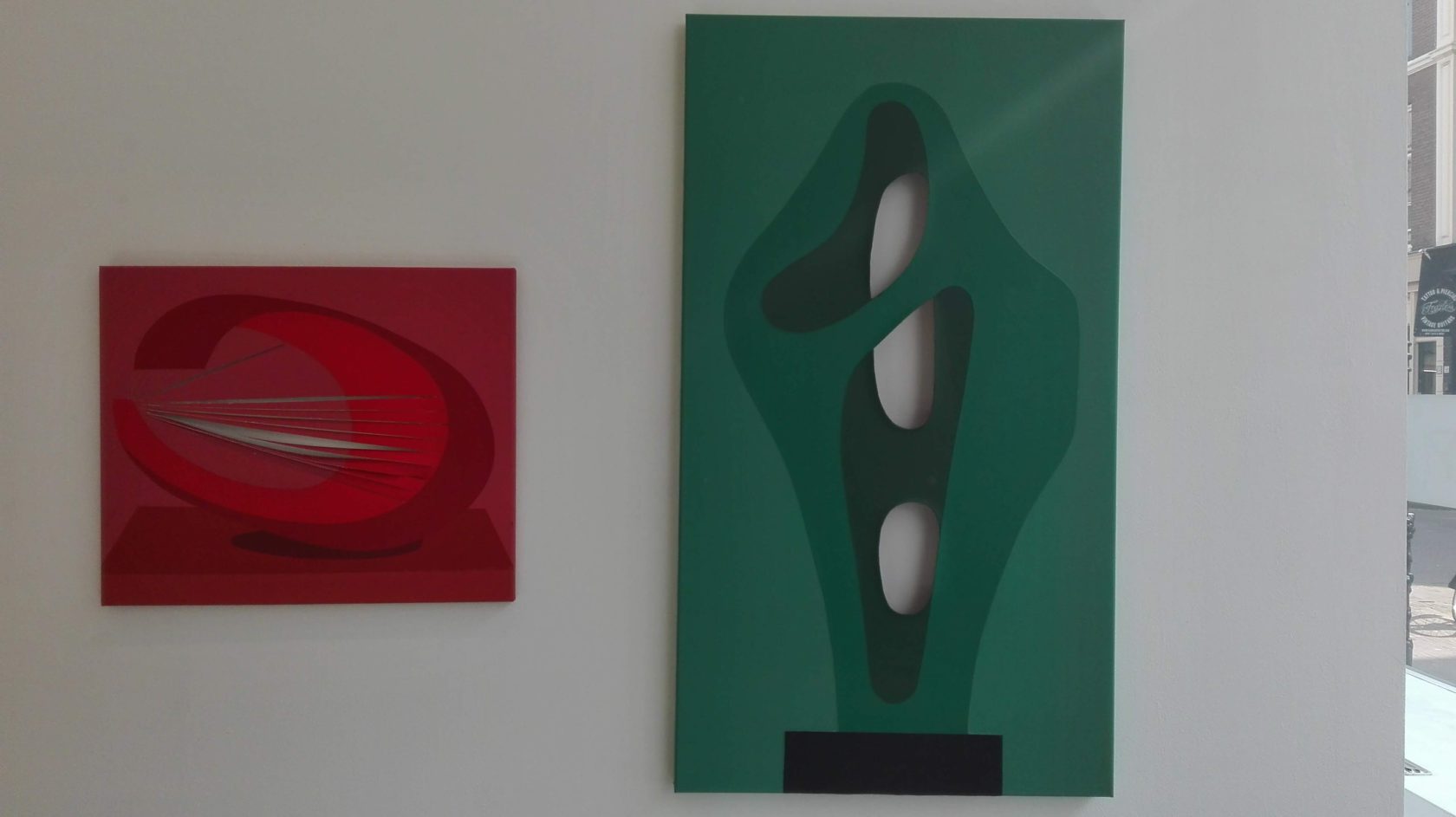 Gisterochtend liep ik in de Haagse Prinsestraat even binnen bij de prachtige en karakteristieke galerie Twelve Twelve van Silvia Bakker. Tot m’n geluk hing er nog het fraaie en sterke werk van Koos Flinterman. Soms groot en dan weer klein uitgevoerde schilderingen in acrylverf, maar ten alle tijde monumentaal in zijn vorm. Het zijn beeldcitaten uit de rijke modernistische westerse beeldhouwkunst, zoals het werk van Henry Moore en Barbara Hepworth.