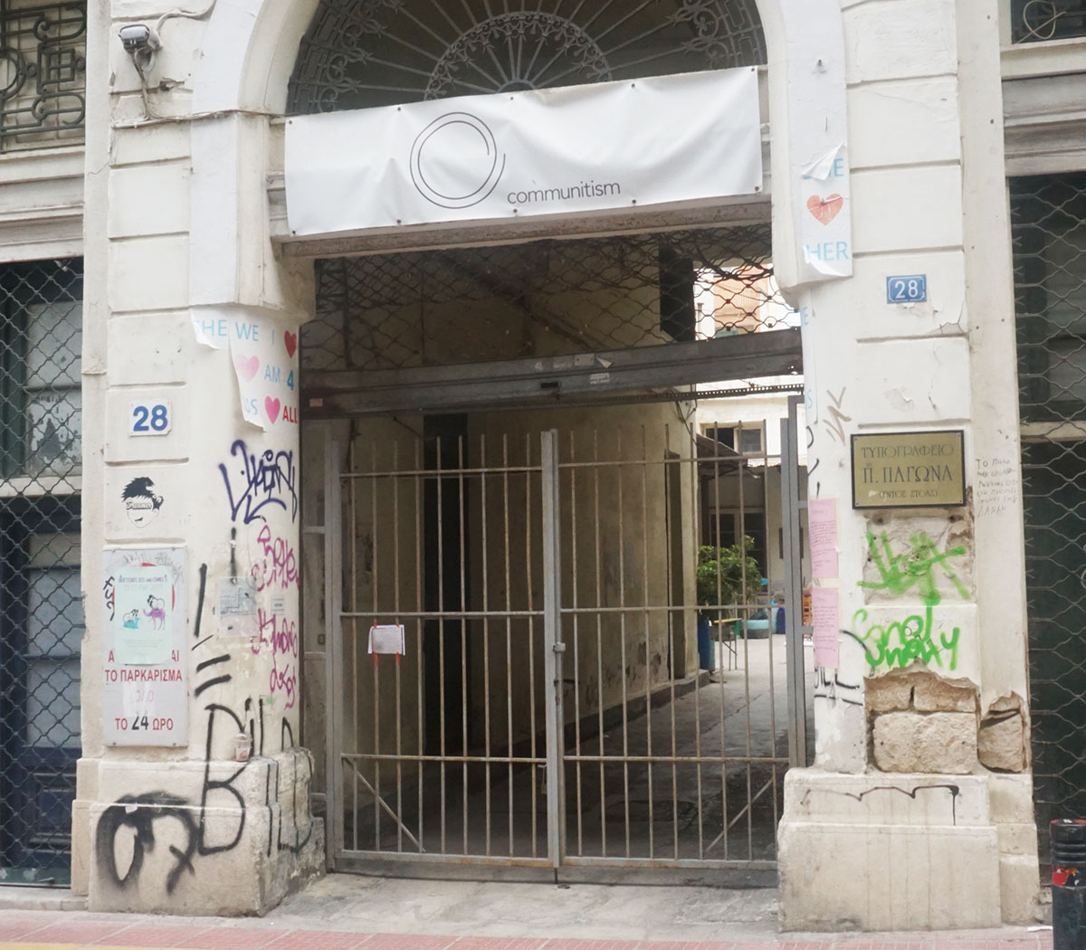 Niet ver van The Breeder bevindt zich het initiatief Communitism. dat zichzelf als een open community voor creatieve professionals omschrijft en verlaten gebouwen benut voor coöperatieve activiteiten en het delen van ongebruikt erfgoed. Helaas bevindt Communitism zich achter een hek dat gesloten blijft. Accessibility, usability, fairness en inclusiveness zijn de basiswaarden van het initiatief. Maar we voelen ons toch enigszins buitengesloten en plakken ons pamflet met rode tape aan het hek.