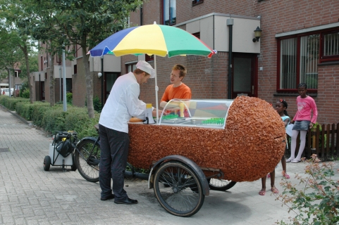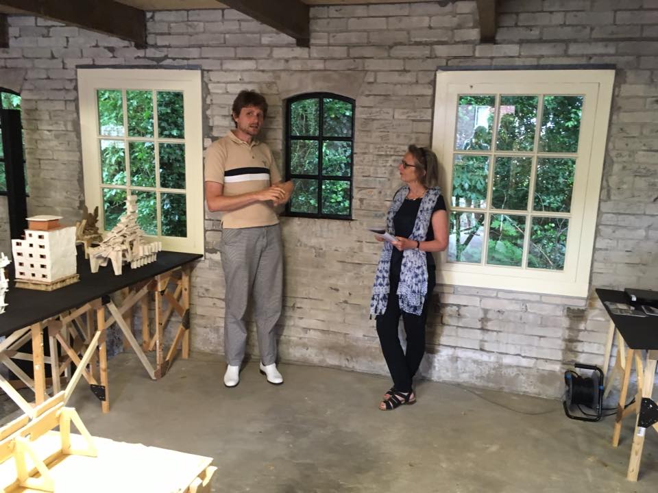 Inmiddels zijn we vijf tentoonstellingen verder en bezocht ik de opening van Witte Olifanten VI. Lydia van Oosten ging tijdens de opening van deze expositie in gesprek met kunstenaar Tilmann Meyer-Faje. Zijn werk is nu te zien in de oude Stelmakerij in het Groningse Sellingen. Tilmann studeerde aanvankelijk architectuur, maar hij was meer geïnteresseerd in de vlekken op het plafond dan in de theorielessen van zijn docenten. Daarop besloot hij om naar de Gerrit Rietveld Academie te gaan en later ook nog naar het Sandberg Instituut. Daar studeerde hij af als performance kunstenaar, maar hij hield interesse in architectuur en de leefbaarheid van de ruimte voor de mens. Hij deed een project in de wijk Stedenwijk-Noord in Almere waar hij met een snackfiets vol kroketten de buurt rond reed om mensen met elkaar in contact te brengen. De actie werd een groot succes. Maar Tilmann had er moeite mee dat hij als een een soort reclamebord functioneerde voor de wooncorporaties, waarop hij besloot hier mee te stoppen.