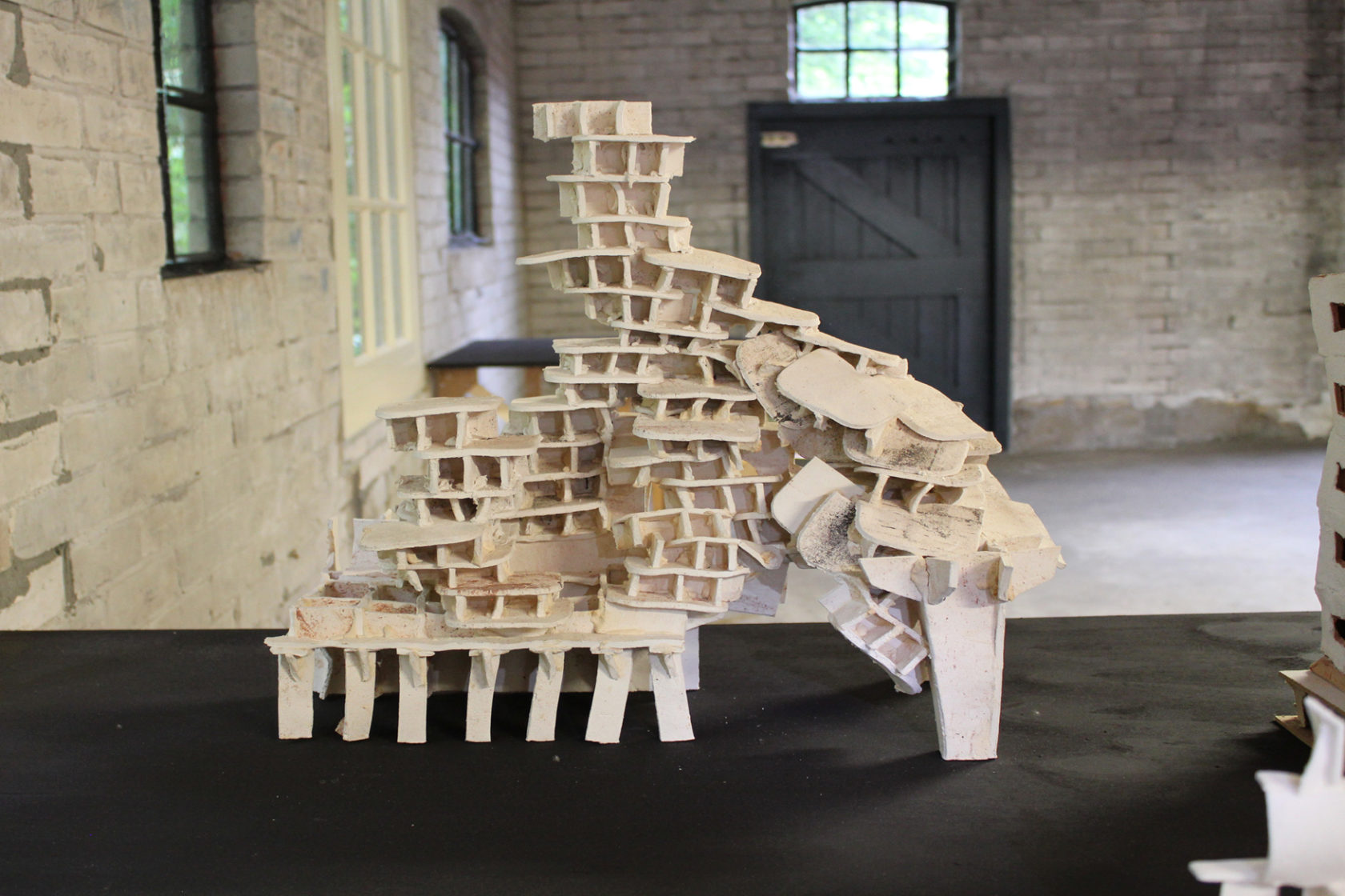 De titel van de expositie ‘Waar eindigt het?’ heeft met Tilmann’s doorlopende onderzoek te maken. Tilmann krijgt steeds meer gevoel voor klei als materiaal. Waar zijn werk aanvankelijk veel grover van structuur was, wordt het gaandeweg steeds verfijnder en dunner en ontwikkelt hij steeds nieuwe constructies.