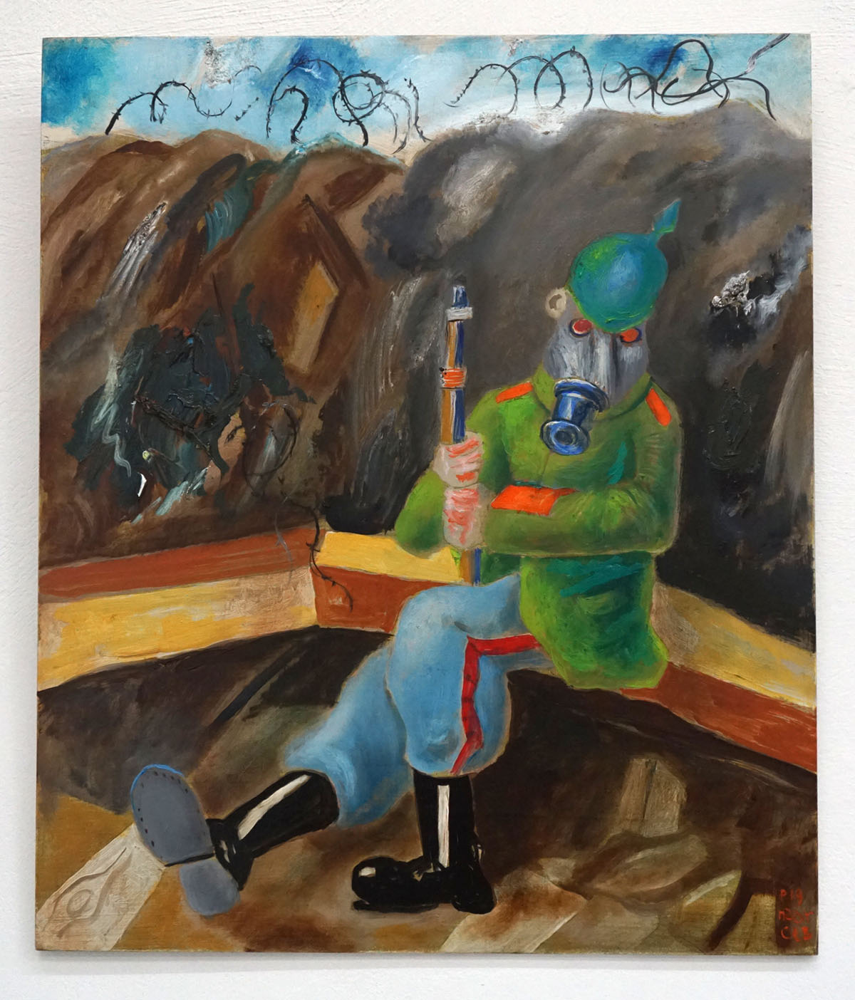 PA: Dat is uit een gedichtje van Lord Byron: “Now hatred is by far the longest pleasure; men love in haste but they detest at leisure.” Die angst van hem is iets wat heel veel mensen hebben. Het is een oerbron. Ik ben altijd zenuwachtig, bijvoorbeeld. Zo word je geboren. Dat is geen keuze. Ik denk ook niet dat Cedric voor de Eerste Wereldoorlog als thema gekozen heeft. Ik heb niet voor zelfportretten gekozen. Dat is een constatering achteraf. Ik verzin mijn kunst niet van tevoren.
