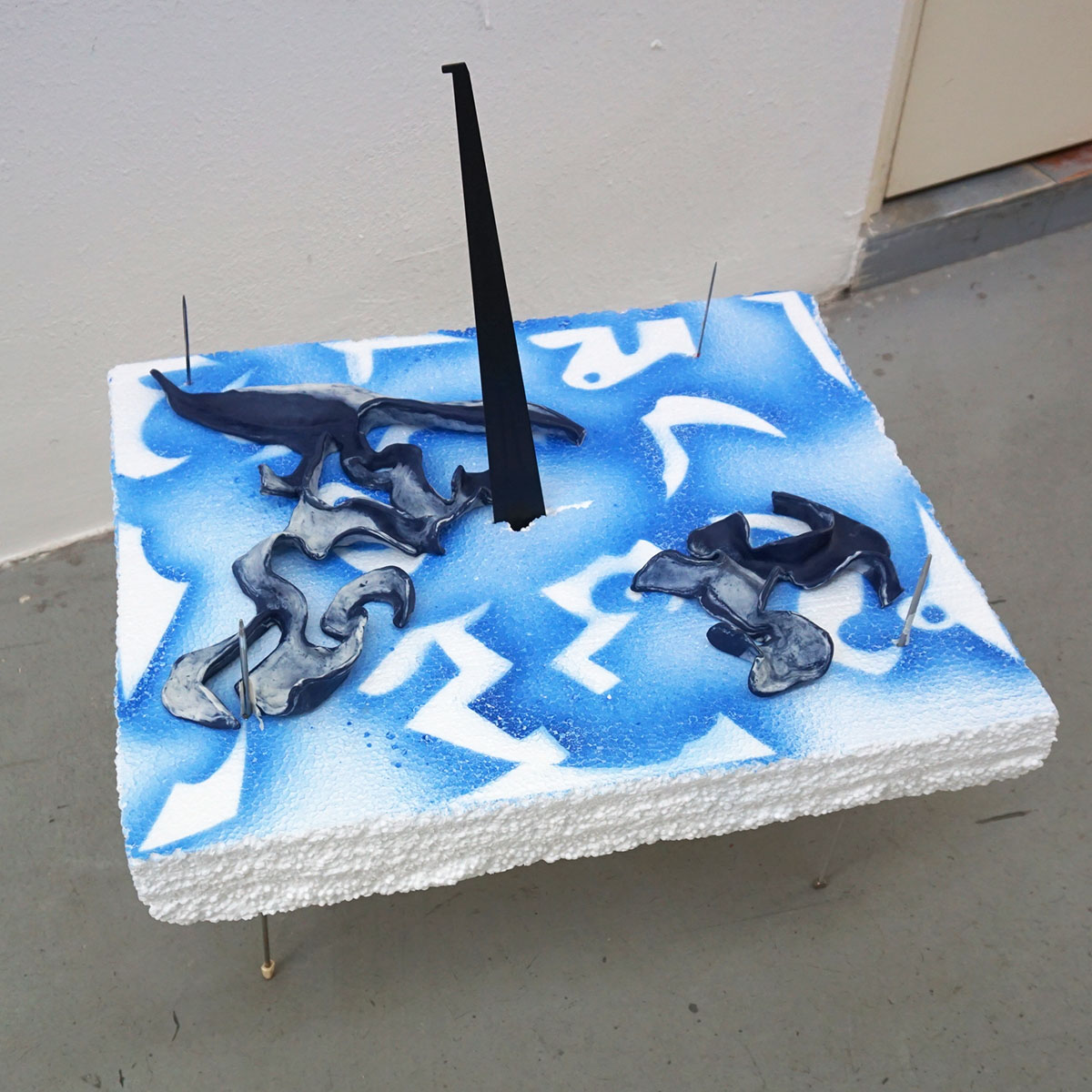 Nog een dubbeltentoonstelling maar van een geheel andere aard bij CINNNAMON. De twee naast elkaar gelegen ruimtes van de galerie maken de exposanten Just Quist en Yannick Val Gesto meer tot buren van elkaar dan samenwonende partners. Het is moeilijk om er achter te komen of zij goede buren zijn of niet, maar de exposanten gaan in ieder geval heel anders om met hun tijdelijke verblijf. Yannick Val Gesto is het meest stijlvast en heeft zijn serie schilderijen op een blauwe wand geplaatst als een doorlopend verhaal. Just Quist doet er alles aan om aan elke vorm van logica te ontkomen. Hoewel zijn werken in een heldere taal zijn uitgevoerd, zijn de betekenissen dat allerminst. Voor een op de vloer gelegd, en met de tekst ‘CALL ME HYSTERICAL BUT CRITICAL’ ingegraveerd, exemplaar van van ‘s lands bekendste kunsttijdschrift heeft Quist een goedkope laminaatvloer (Tundra van Ikea) gelegd. Het kliklaminaat lijkt zoveel mogelijk op de houten vloer van ‘s lands meest populaire museumbestemming (Voorlinden). Ik ben benieuwd of Voorlinden binnenkort bij CINNNAMON aanklopt om het werk aan te kopen. Het zou een stap zijn in de richting van onsterfelijkheid van de onnavolgbare kunstenaar.
