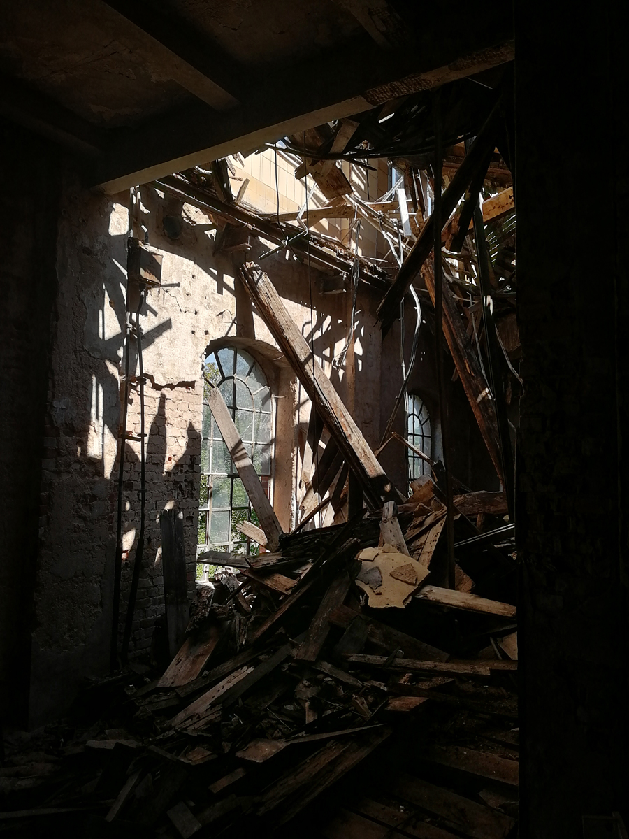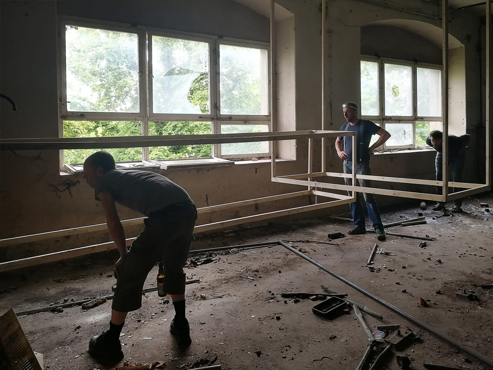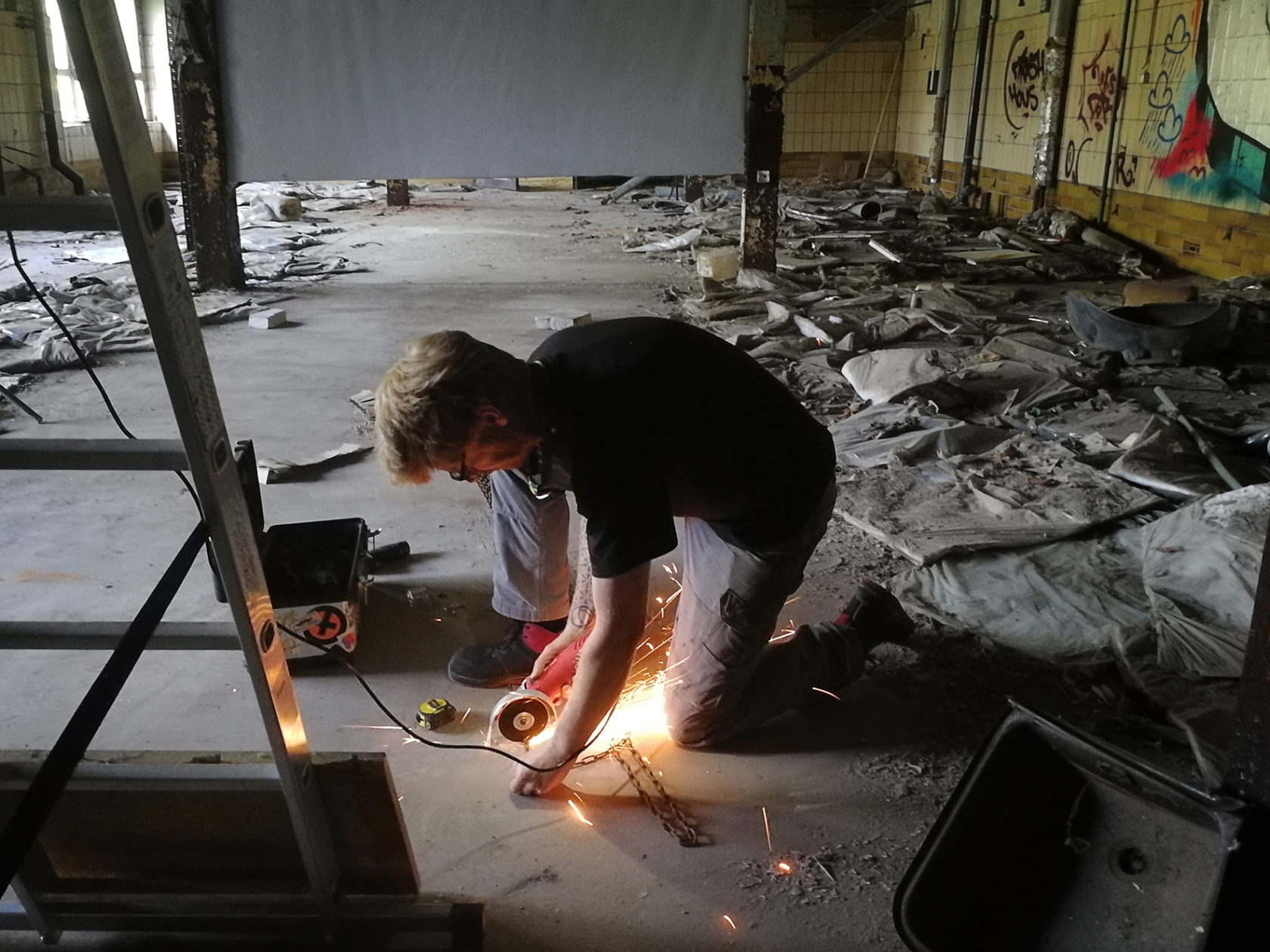 Dit jaar namen we onze intrek in de voormalige VEB Zitza Werk, een gigantische shampoo- en zeepfabriek waarin we vijf weken lang hebben gewoond en gewerkt. Een complex van 24 aaneengeschakelde gebouwen met een totale omvang van rond de 20.000 m2. Het complex bestond ooit uit 70 gebouwen waarvan er nu dus nog 24 overeind staan. Het eerste gedeelte van het complex werd gebouwd in 1884 en na vele jaren van productie van shampoo en zeep kwam er in 1996 een einde aan de bedrijvigheid. De fabriek werd voorgoed gesloten en het complex heeft sindsdien zwaar te lijden gehad van de weersinvloeden, ijzerdieven en vandalisme. Na 23 jaar leegstand is een groot gedeelte van het gebouw verkrot en zijn gedeeltes ingestort en onbruikbaar geworden.