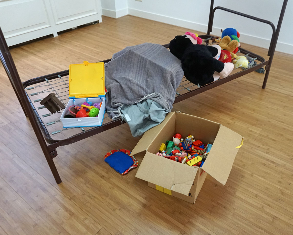 Thomas Rentmeister bezocht een oud weeshuis en vluchtelingenopvang in Elbisbach (bij Leipzig) op zoek naar gebruikte spullen. Maar ter plekke besloot hij dat het geen materiaal was, maar een werk op zichzelf. Behalve snapshot-documentatie van de aangetroffen situaties toont de kunstenaar bij Ellen de Bruijne Projects enkele overgebrachte bedden met toebehoren die als installatie in de ruimte staan. Niet haaks op of parallel aan de muur zoals in het weeshuis, maar enigszins diagonaal in de galerieruimte geplaatst als interveniërende objecten. Wat aanvankelijk als beeldrijm overkomt, blijken minimalistische kopieën in tijd en ruimte.
