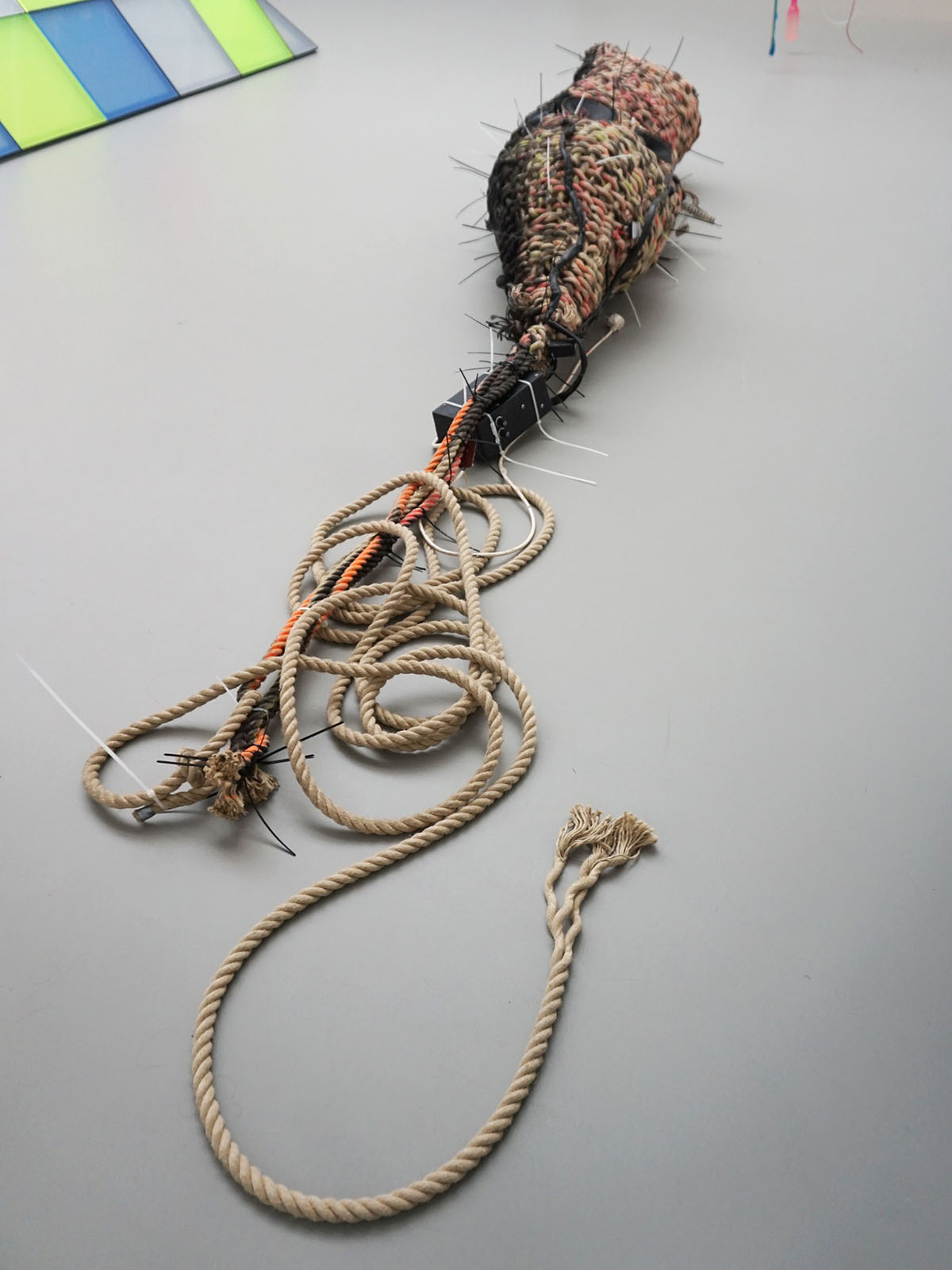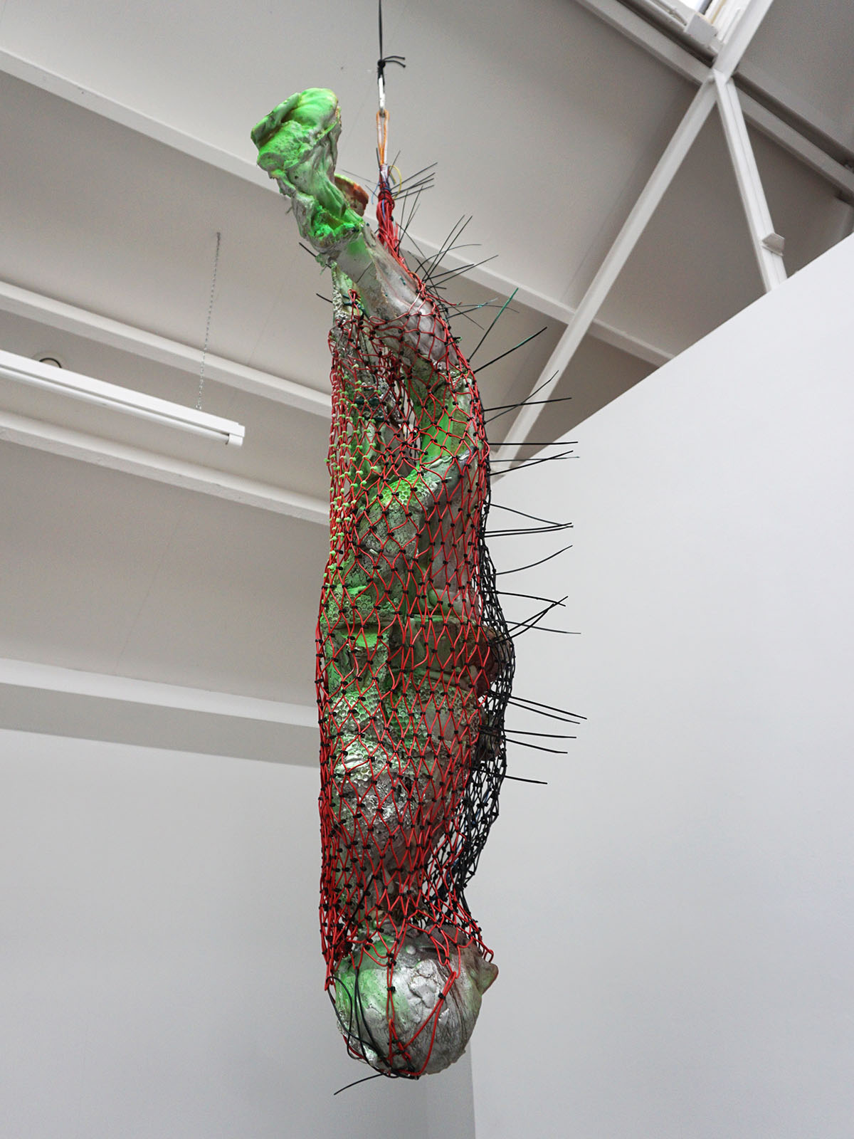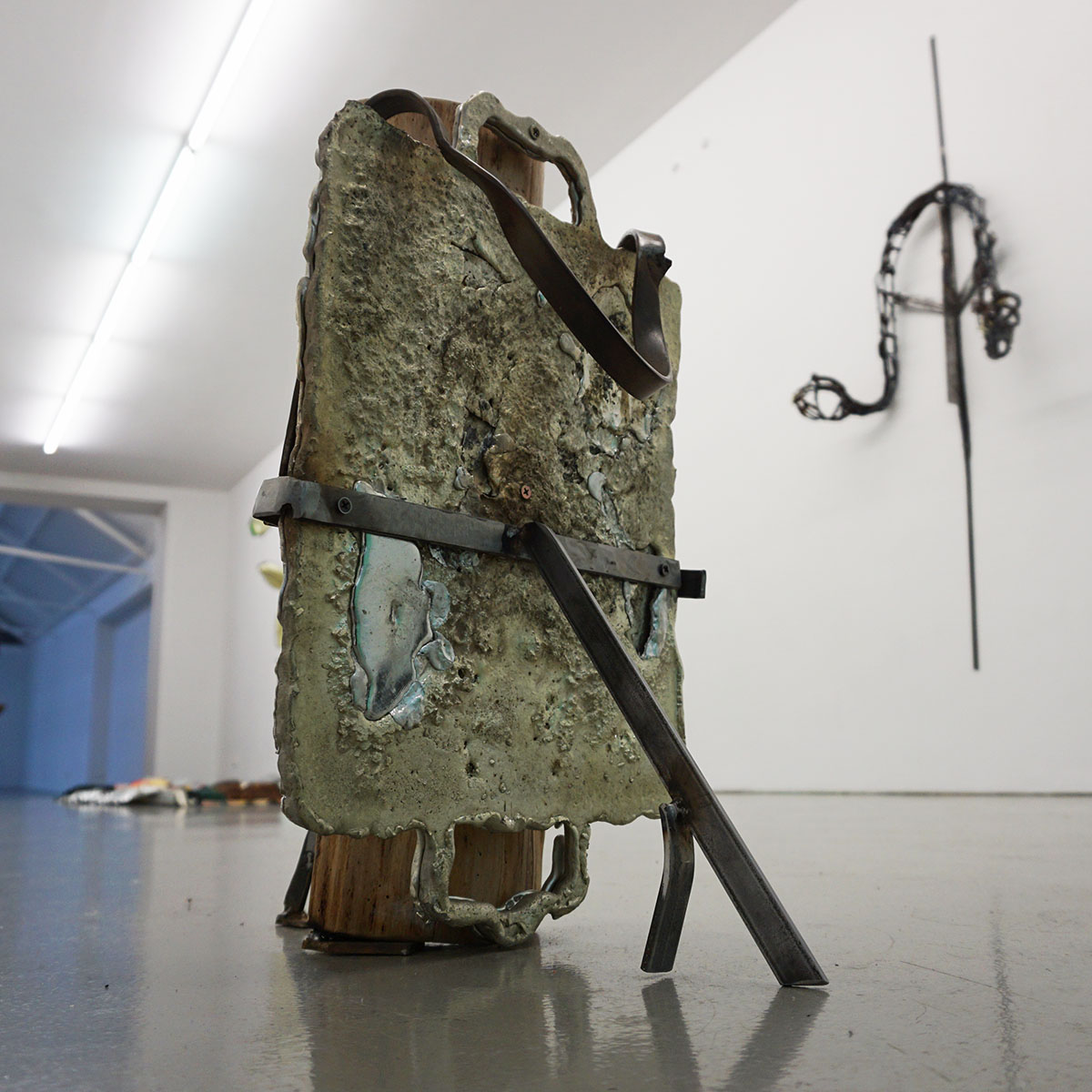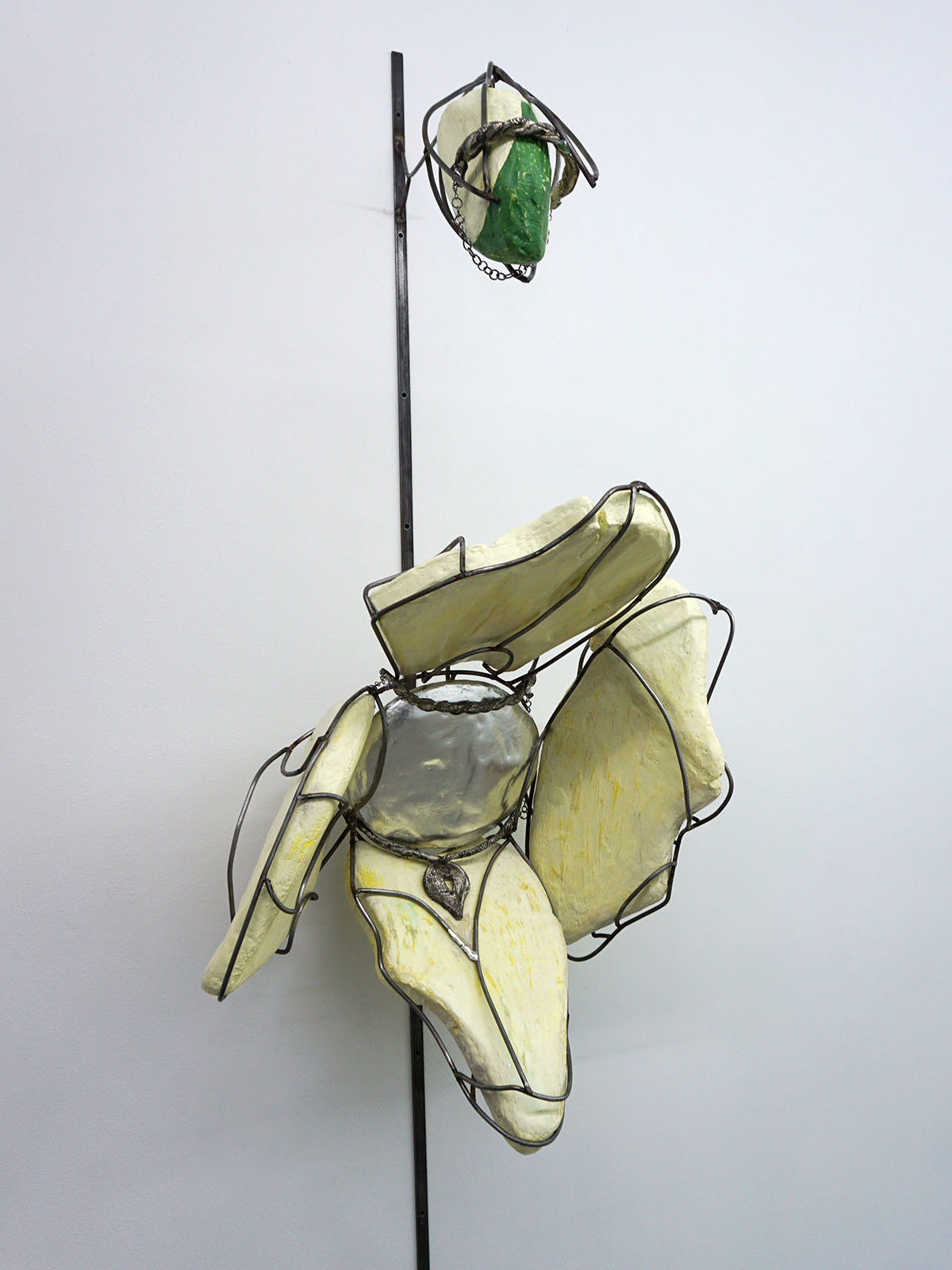 Contraptions is het woord dat me te binnen schiet bij het zien van de hangende werken van Folkert de Jong in de achterruimte van Fons Welters. Sculpturen als ‘apparaten’ met een vreemd voorkomen en een onnodig ingewikkelde structuur of samenstelling. Knullig, onveilig en intrigerend tegelijk. In de voorruimte sculpturen van Em Rooney in ijzeren houders gevat als harnassen; robuust en veilig. Laatste weekend, dus haast u.
