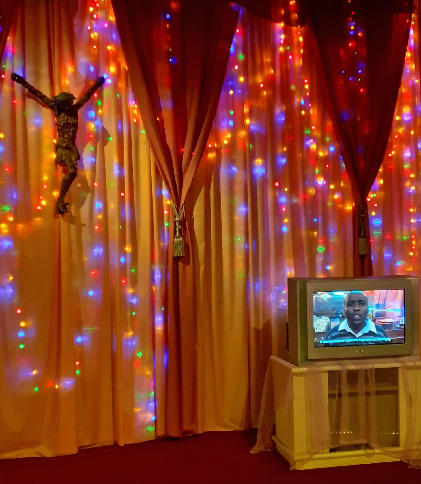Voor de kleinste installatie van Save Me is een deel van de muur behangen met een gordijn voorzien van gekleurde knipperlichtjes. Precies dát decor hangt achter Josphat Gwaro Makori uit Accra, Ghana, het enige videoportret dat binnen (in een gebedsruimte) werd gefilmd. Josphat Gwaro Makori uit Ghana is pastoor van een christelijke congregatie. Voorheen martelde en vermoordde hij mensen, vertelt hij in de camera. Hij kreeg echter amnestie van de regering en van zijn moeder de tip om zich tot Christus te bekeren.