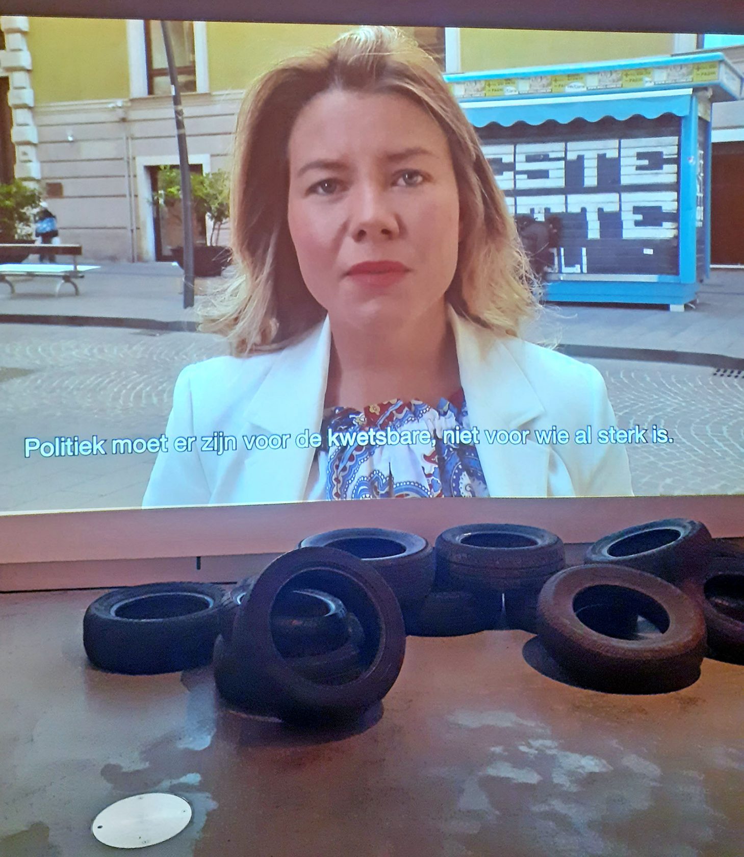Het meest indrukwekkend – en het minst subtiel – is het derde deel van de expositie over de positie van de vrouw, die overal onder druk staat. In The Times They Are a-Changin’ uiten elf vrouwen onvrede over de (politieke) situatie waarin zij zich bevinden: activiste Maria Kulikovska hijst de vlag van de Oekraïne nadat ze heeft verteld hoe niemand durft te protesteren over de manier waarop Rusland de Krim heeft geannexeerd. In Istanbul spreekt verkoopster Serra Kasapoğlu haar zorgen uit over de vervagende grenzen tussen staat en religie en de gevolgen voor de vrijheid van vrouwen. De Napolitaanse politica Alessandra Clemente stelt: ‘Politiek moet er zijn voor de kwetsbare, niet voor wie al sterk is.’ Tegenover de videoprojectie zijn posters aangebracht met foto’s van de vrouwen met uitspraken uit de video die nu dienen als strijdkreten.