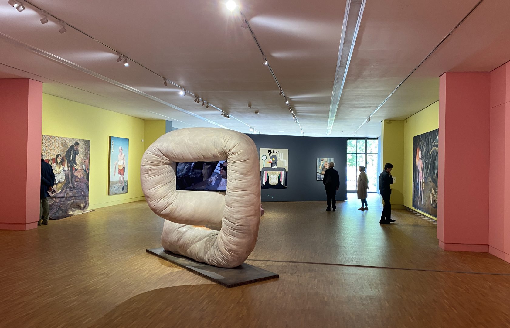 Inmiddels ben ik over één ding wel uit: Het werk, dat ondanks zijn perfecte imperfectie weet te wringen, vind ik prachtig. Met uitzondering van een kolossaal doek dat aan de achterkant van de achterwand hangt, waar ik weinig mee kan en waar ik geen foto van maakte. Er valt natuurlijk nog veel meer te zeggen over deze tentoonstelling, waarin behalve schilderijen onder andere tekeningen, een groot pluche 3-dimensionaal werk en een video-installatie te zien zijn. Ga zelf maar kijken!