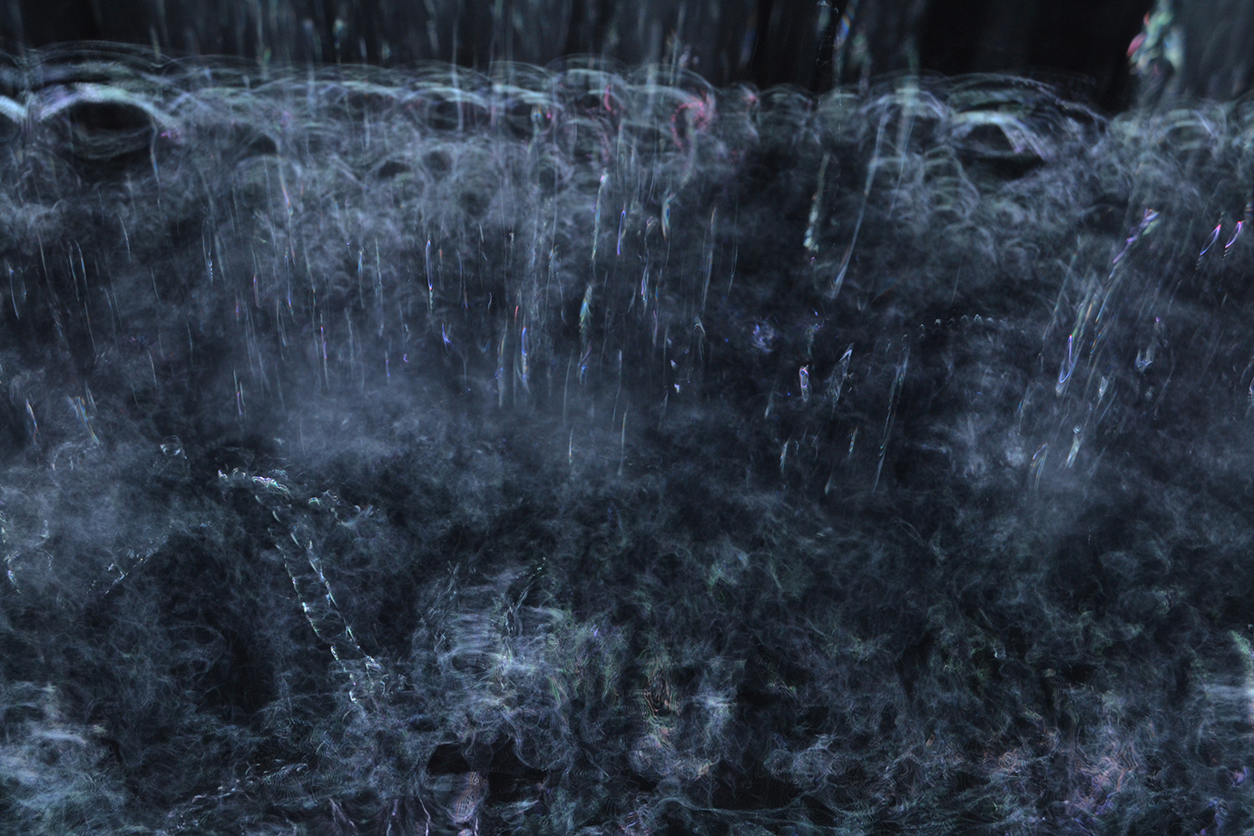In search for true randomness - Falling water drops raining down through the plumbless void. Capturing fragmented temporalities with the long light exposure of a pinhole camera