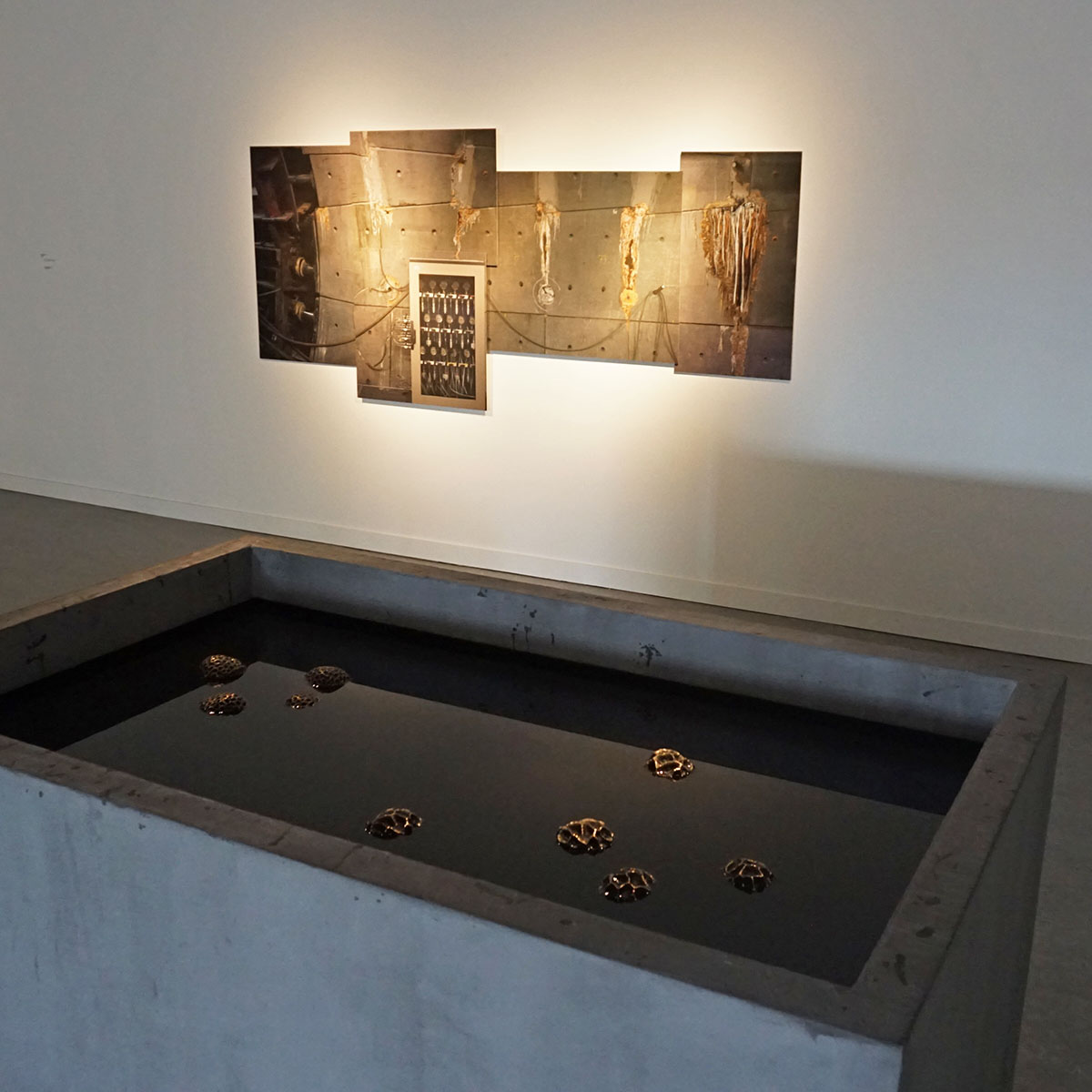 Christoph De Boeck onderzoekt de akoestiek van het gebouw met een opstelling die zowel geluid opvangt als produceert. Met een paraboolmicrofoon worden reflecties van het diepe geluid van een speaker opgevangen. Met de weerkaatsing van het geluid en een tijdmeting kan de afstand van de ruimte worden berekend. De onzichtbare kwaliteiten van een ruimte komen ook ter sprake in een serie werken van Benjamin Verdonck. Het gaat hem dan vooral om de zaken die ons niet opvallen of om toevoegingen die we normaliter niet tot de expositie rekenen. Zo staat er in een kleine kamer een emmer zonder lekkage. Of er ligt een bananenschil of verkreukte verpakking tegen de plint. In de kamer ernaast zijn alle lichtspots naar dezelfde hoek gericht waardoor een alle aandacht opeisende lichtsculptuur ontstaat.