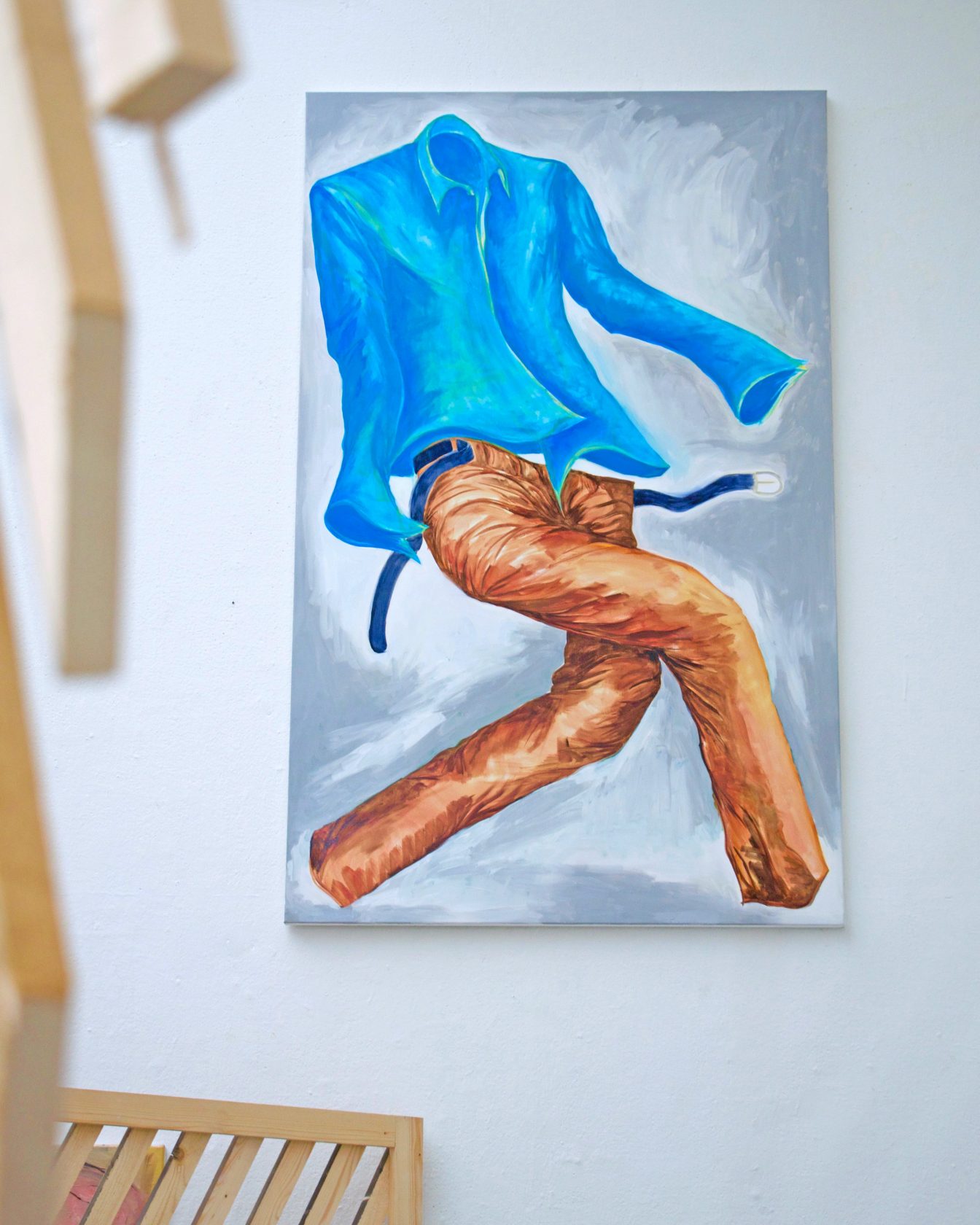 Painting feels like an elaborate way of note making. While painting, I am spending more time on one idea and I am trying to finish a thought. That is not the case in my installations, which is a collection of unfinished thoughts. That can also be annoying, I guess. Painting is a really good way to work out a thought into something definite. But I don’t know how to show paintings within an installation. It is an awkward feeling, that I like as well.