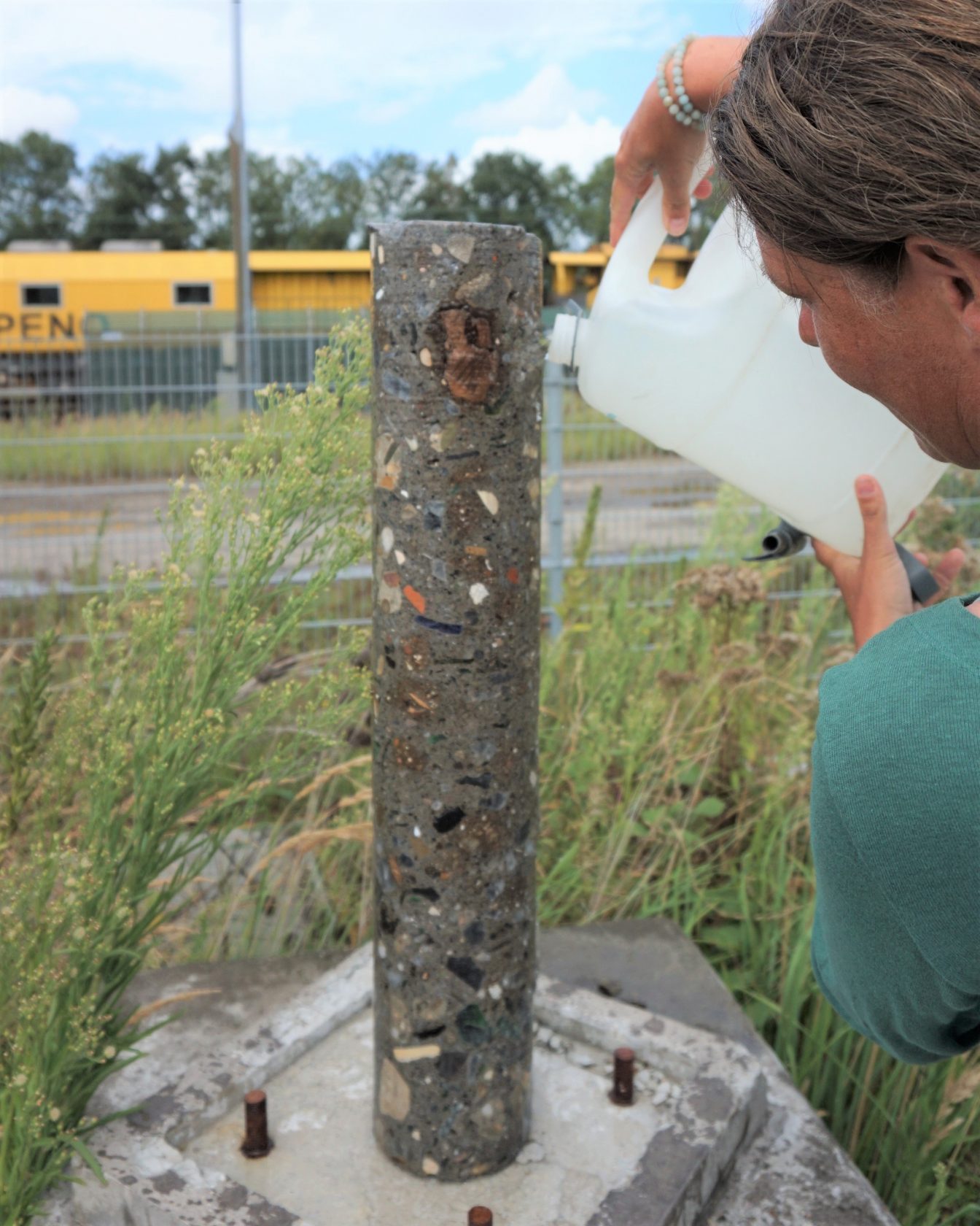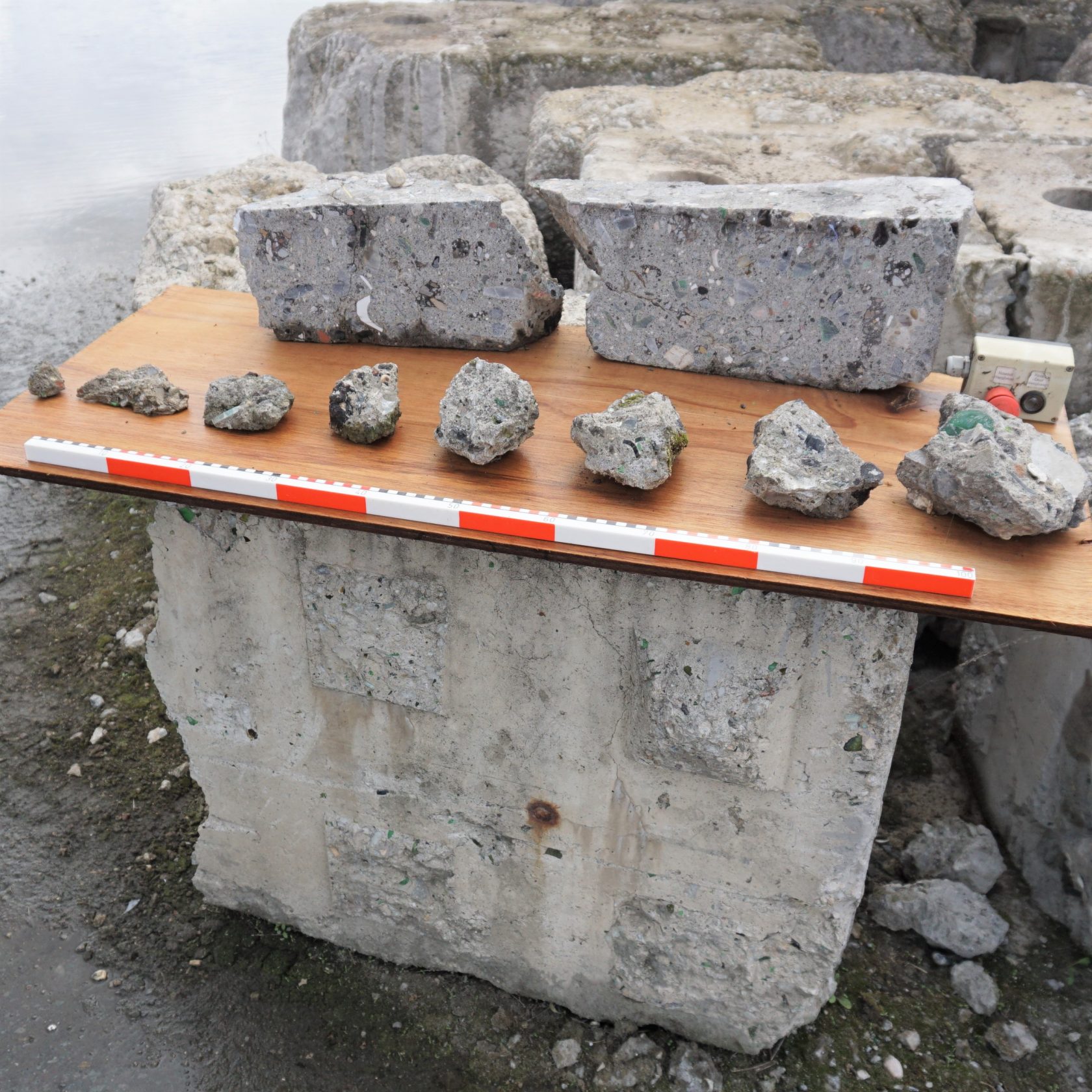 Esther Kokmeijer is zowel bovengronds als ondergronds actief. Met behulp van boorkernen onderzoekt Kokmeijer de archeologische kwaliteiten van de voormalige Rotterdamse Betoncentrale. Het in het beton verwerkte afval, variërend van glas en hout tot wijnkurken en elektriciteitssnoer, wordt glad gepolijst en met water besprenkeld edelgesteente in het zwakke beton.